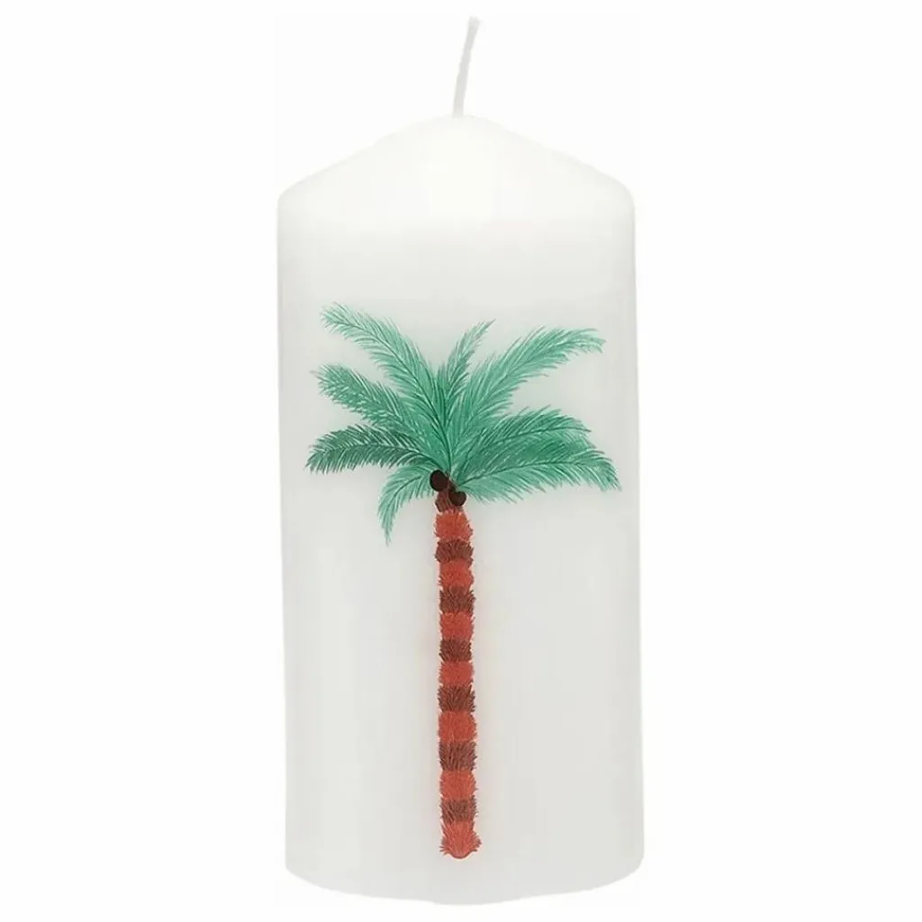 - La bougie émoussée Palm Tree est une bougie à l’imprimé estival qui s’intègre parfaitement à votre intérieur. Cet article est une décoration parfaite, que vous choisissiez d’allumer la bougie ou non ! Spécifications : – Dimensions : 6,5 x 14 cm – Matériau : Paraffine – 25 / 30 heures de combustion – Remarque : les bougies ne doivent pas être laissées sans surveillance ou brûlées jusqu’au bout.