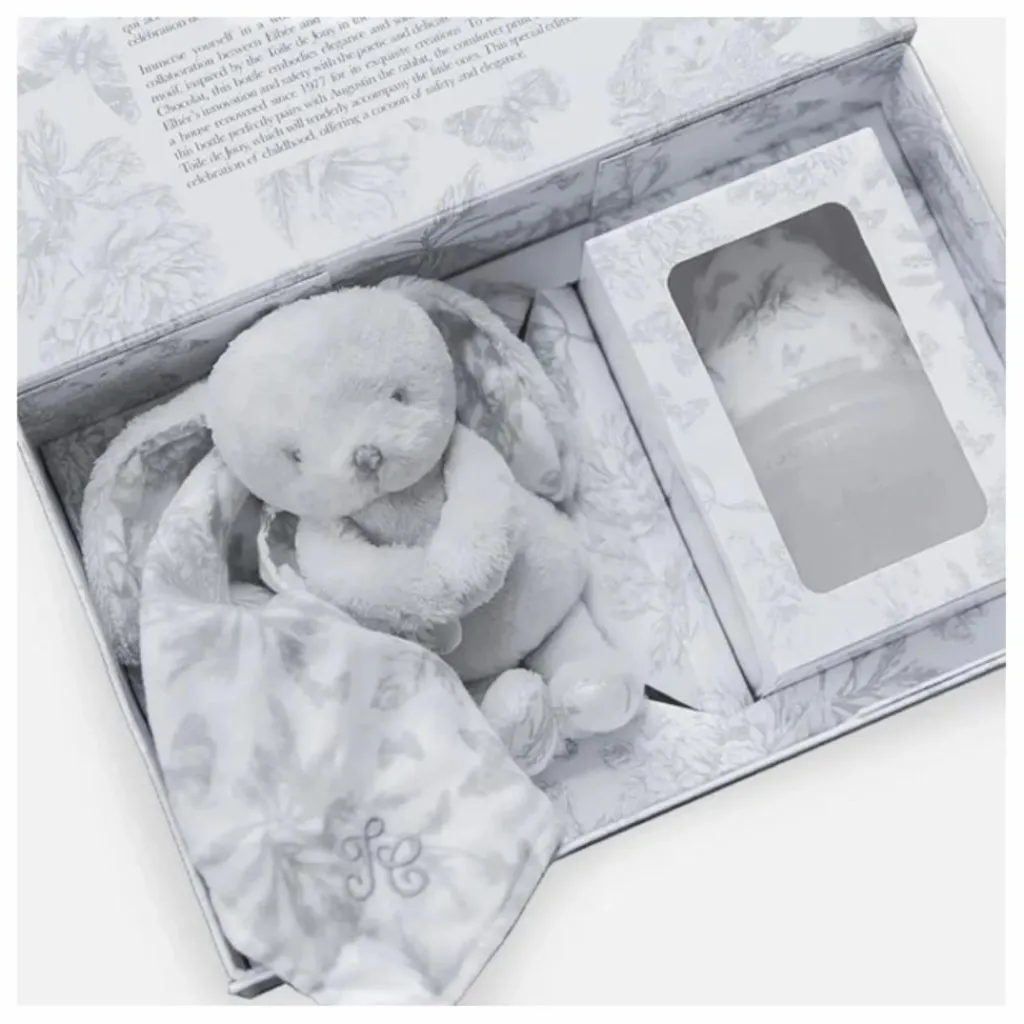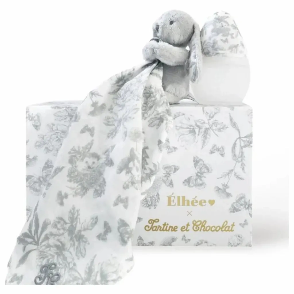 Élhée s’associe à Tartine et Chocolat, icône française de l’élégance enfantine, pour créer un coffret raffiné composé d’un biberon 150 ml et de Augustin le lapin, tous deux sublimés par le délicat motif inspiration Toile de Jouy, emblématique de la Maison Tartine et Chocolat. Cette édition spéciale est bien plus qu’un simple coffret : c’est une ode à l’enfance, un parfait mélange d’élégance et de poésie pour sublimer les moments partagés avec bébé.
