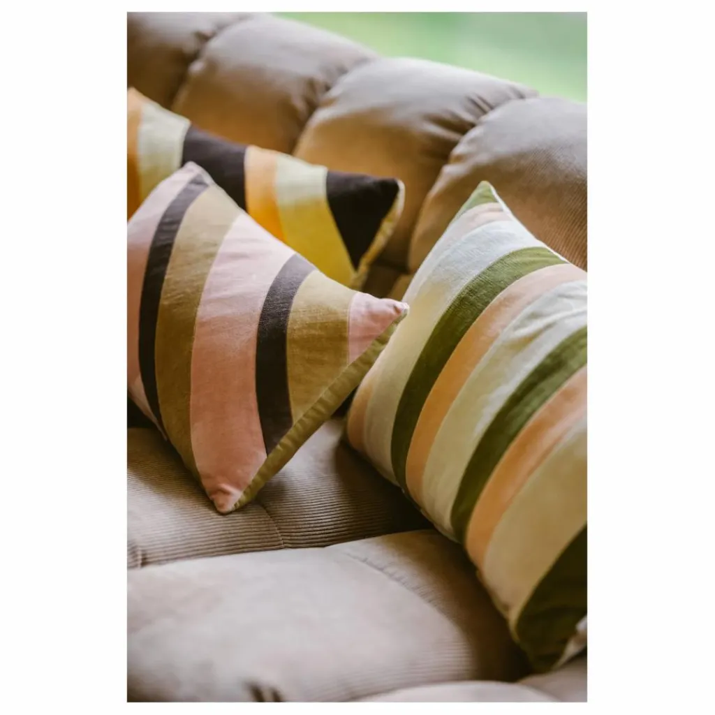 Les coussins en velours rayé ont le pouvoir de se démarquer. Leurs textures somptueuses et leurs combinaisons de couleurs excitantes les rendent parfaits pour les mélanger et les assortir, ou pour attirer l’attention dans une composition discrète.