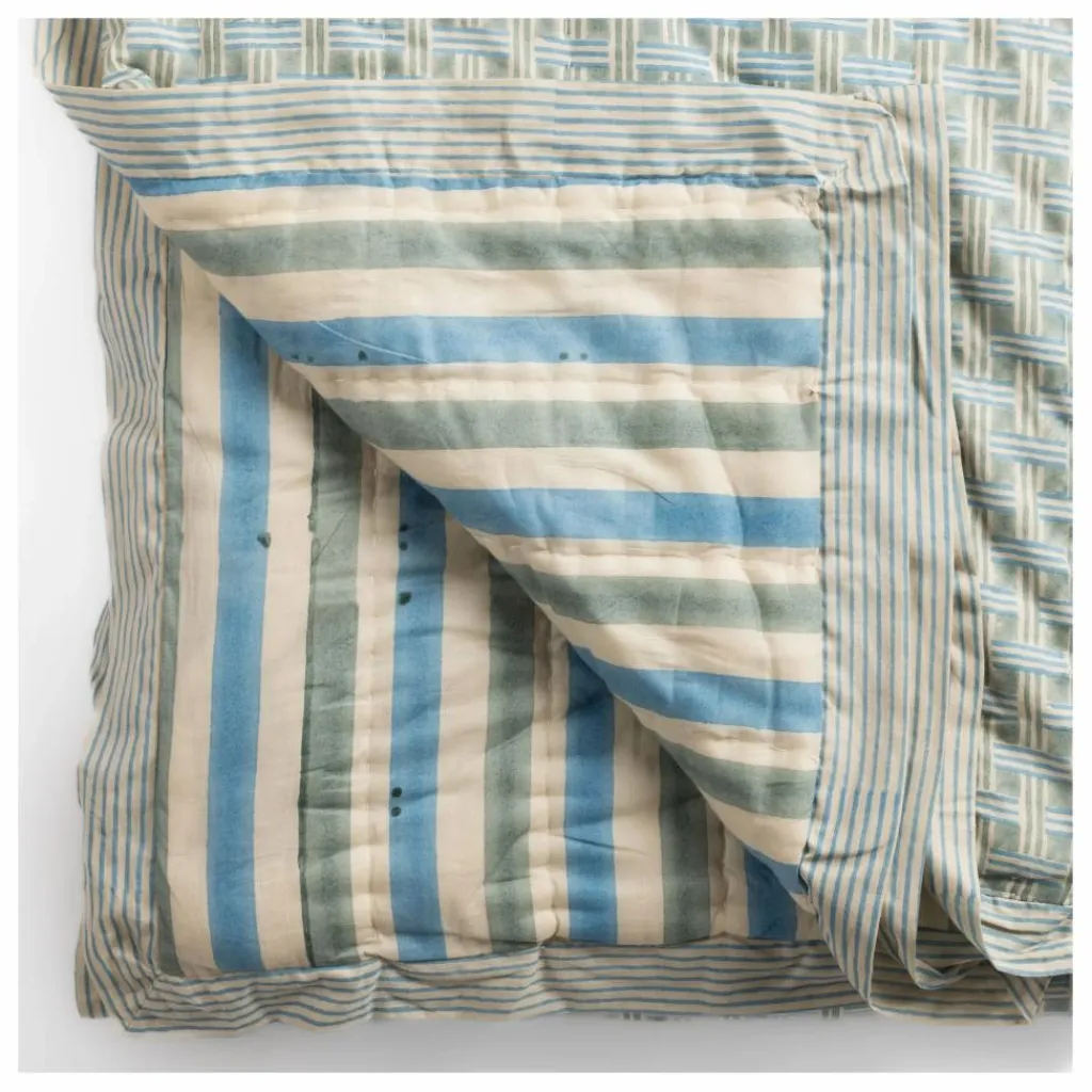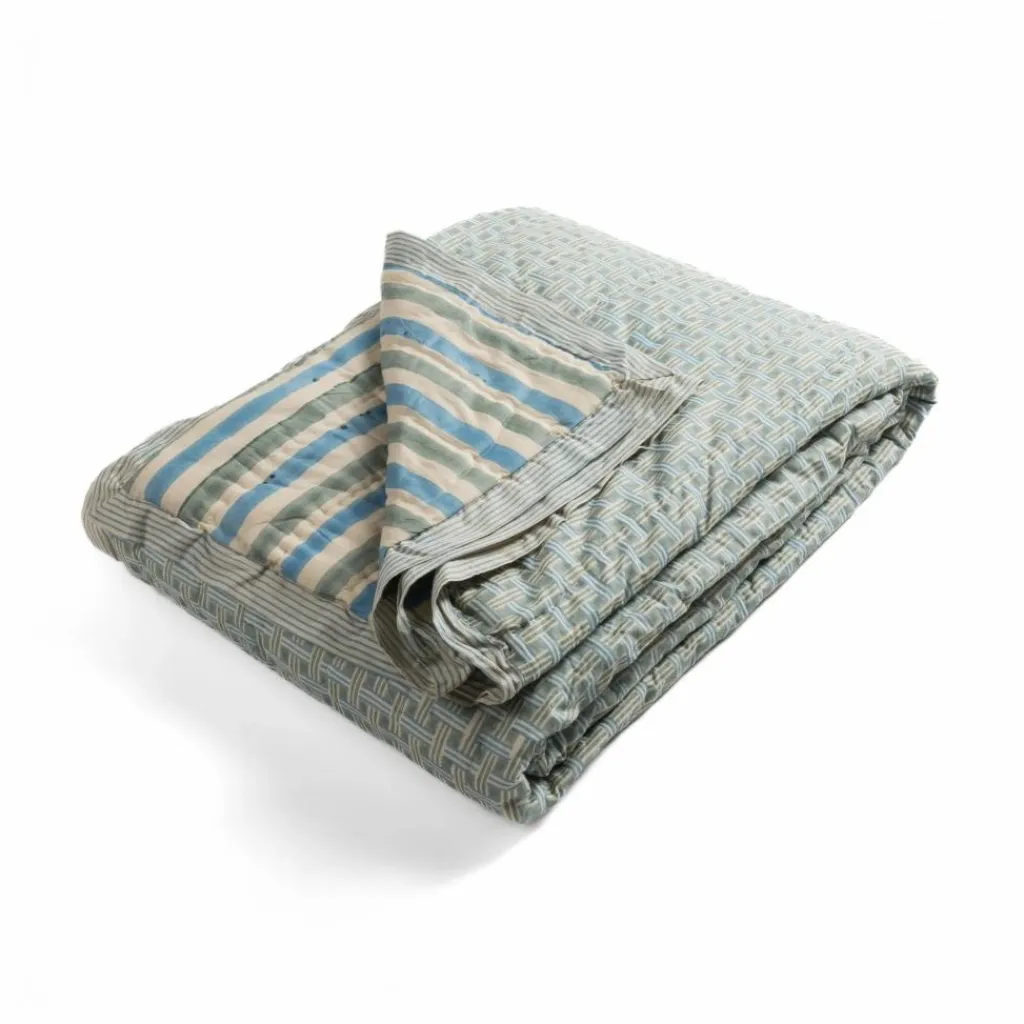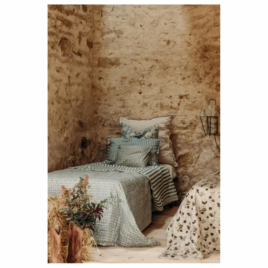 - Couvre-lit une place ou pied de lit en coton matelassé. Le contraste des couleurs et le mariage des deux imprimés lui confèrent une forte personnalité. Réversible, imprimé rayures d’un côté et esprit japonais de l’autre.Pour le lit d’enfant, en jeté de canapé ou en pied de lit. Il se marie parfaitement avec les coussins de la même collection. Idéal en couette d’été, à associer avec notre linge en lin lavé.