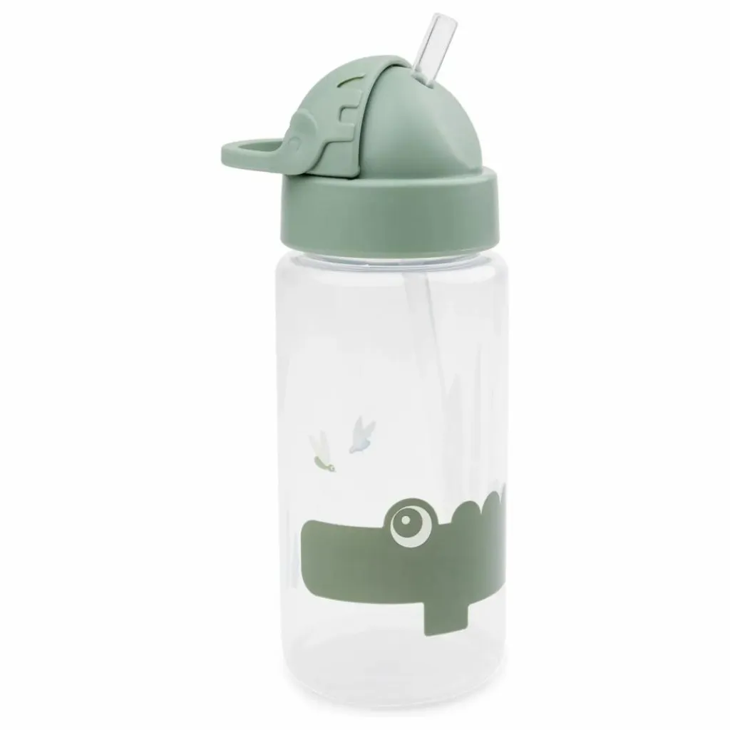 - L’adorable gourde avec paille est parfaite pour le sac à dos des enfants. Avec elle, on est prêt pour de nouvelles aventures ! La gourde a une paille pratique cachée par un capuchon. Une fois cachée, la paille ne renverse plus une goutte. La gourde anti-déversement est un incontournable pour les sorties et encouragera votre petit bout à rester bien hydraté. L’enfant pourra facilement accéder à la paille à l’aide de la poignée du capuchon. La gourde verte est décorée de Croco et d’insectes. Une paille et un embout supplémentaires sont inclus.