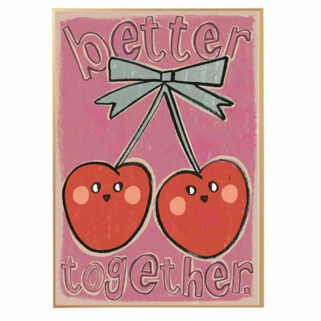 - Laissez-vous séduire par l’invitation au bonheur partagé avec le poster « Better Together » de Studioloco. Un véritable hymne à l’amitié, illustré par deux cerises complices, qui trouve sa place dans l’univers de la chambre de votre enfant. Chaque coup d’œil sur ce tableau est une promesse de sourires, grâce à ses couleurs éclatantes et son design qui éveille l’imaginaire. Offrez à votre espace une atmosphère chaleureuse, où chaque journée débute par une note d’optimisme et de douceur partagée.