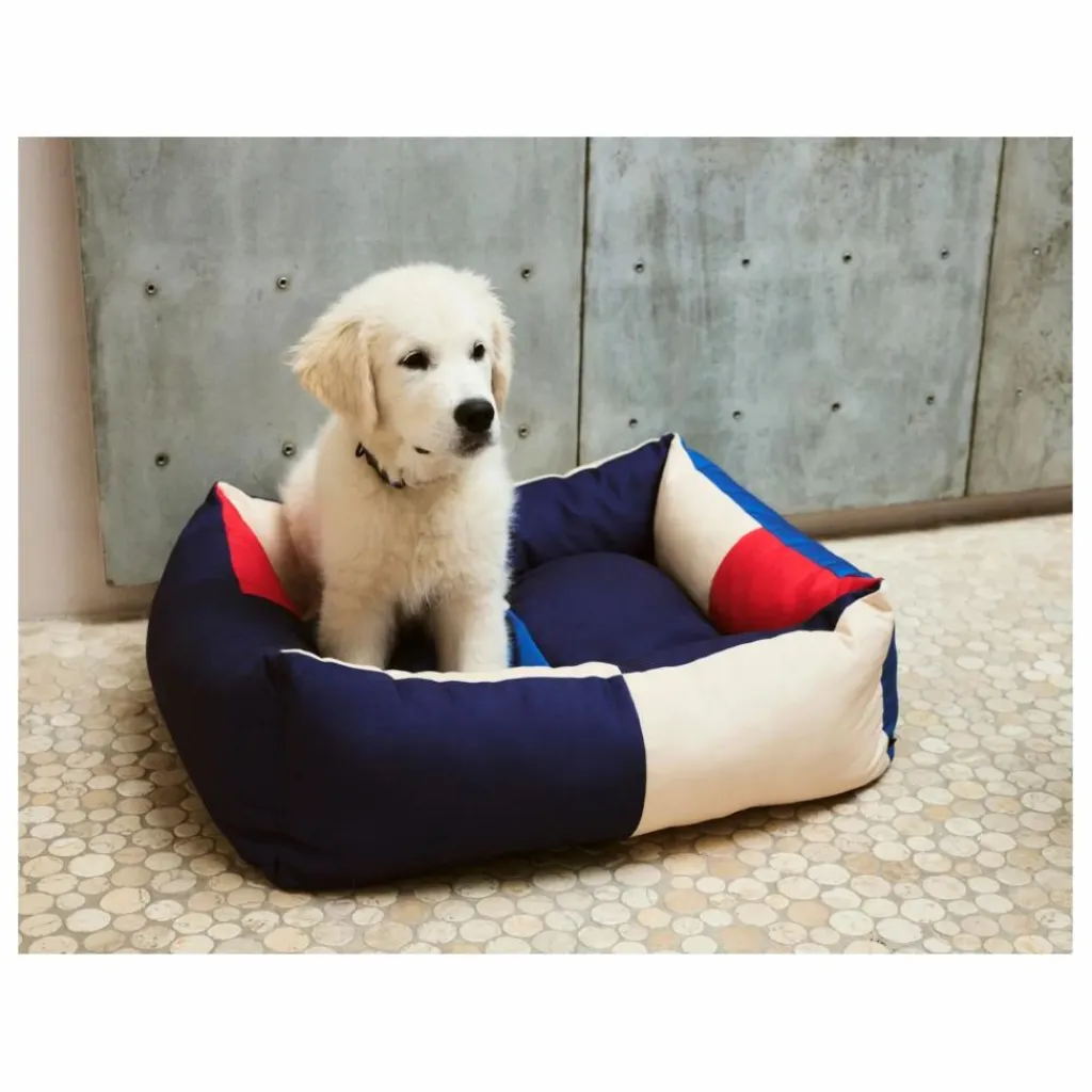 Fruit d’une collaboration entre Mette Hay et son amie Barbara Maj Husted Werner, fondatrice de Holly Golightly, une ancienne boutique de mode et d’intérieur, HAY Dogs invite les propriétaires de chiens et leurs animaux de compagnie à entrer dans l’univers HAY grâce à des accessoires fonctionnels et colorés. Le lit pour chien, au design ludique et coloré, est fabriqué en polyester recyclé résistant et comporte un coussin lavable et amovible rempli de polyester recyclé. Le lit est disponible en trois tailles et dans différents motifs.