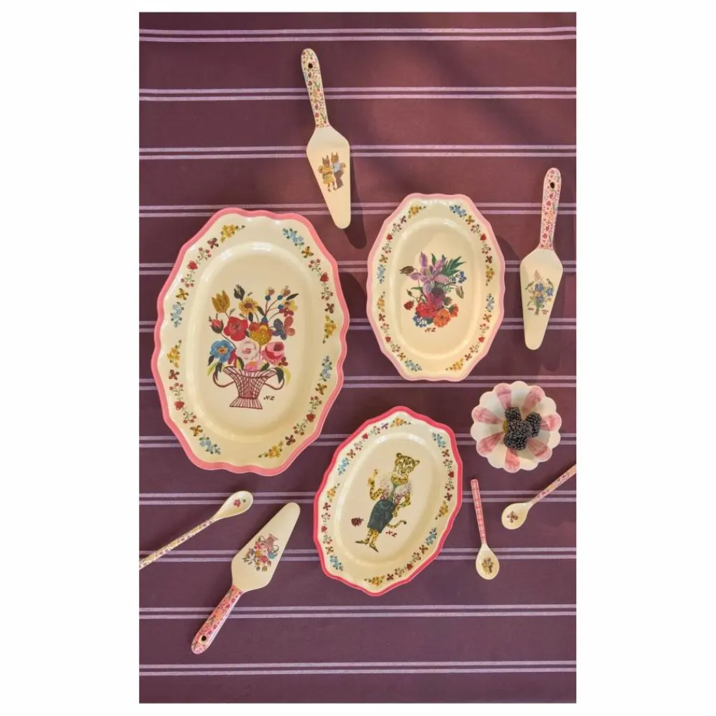 - Servez vos délicieux repas dans ce plat de service d’inspiration vintage, orné de jolis détails et d’un fabuleux léopard diva – le tout animé par Nathalie Lété. Fabriqué en mélamine, il est durable. Il mesure B19 x L26 cm, ce qui offre beaucoup d’espace pour toutes vos créations savoureuses. Sa surface robuste et facile à nettoyer le rend parfait pour un usage quotidien.
