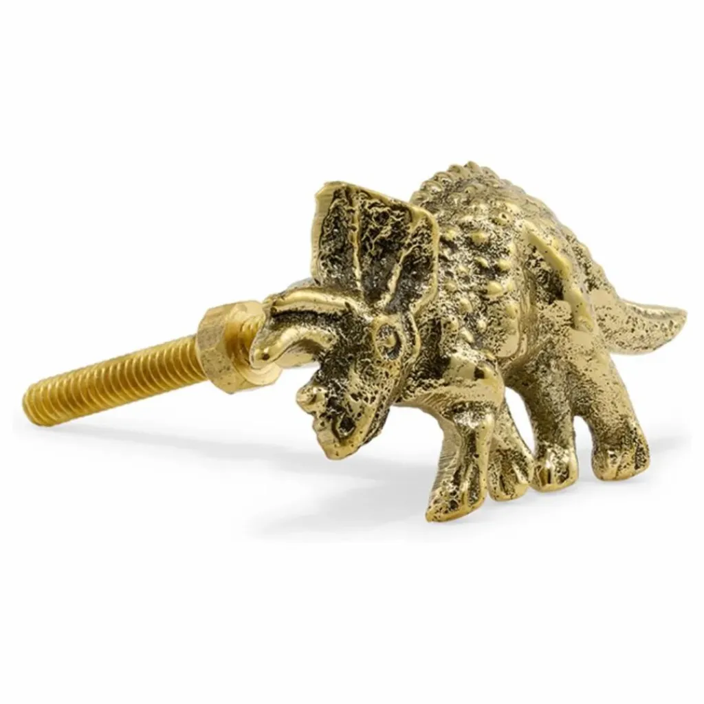 Découvrez le Bouton de Tiroir Dinosaure Triceratop de notre collection de boutons en laiton. Cette pièce unique, 100 % faite à la main par notre équipe en Inde, est fabriquée en laiton recyclé et présente une finition dorée brillante. Le Bouton de Tiroir Dinosaure Triceratop apporte à la fois style et fonctionnalité à votre maison, parfait comme bouton de tiroir, bouton de meuble ou poignée. Rafraîchissez vos meubles avec ce bouton facile à installer et ajoutez-leur personnalité et charme sans effort.