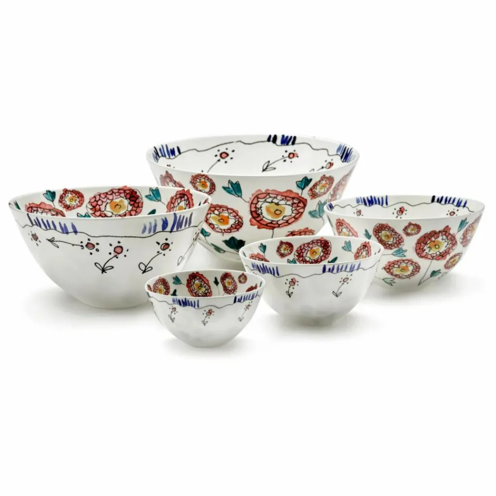 En collaboration avec Serax, la maison de mode italienne Marni a lancé un élégant service en porcelaine de 120 pièces, qui célèbre l’esprit artistique de la marque. Le motif floral inspiré de la nature est signé Francesco Rossi, le directeur artistique de Marni. Il est décalqué sur la porcelaine fine, avant d’y apposer une glaçure pour le rendre résistant à l’usure. Les formes légèrement asymétriques des assiettes, bols, tasses, plats et théières accentuent la finition manuelle et la qualité de la porcelaine.