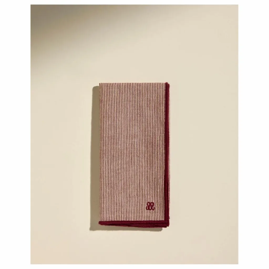 - Tissée, en coton et lin, la serviette de table Tempo est délicatement monogrammée de la signature Maison.