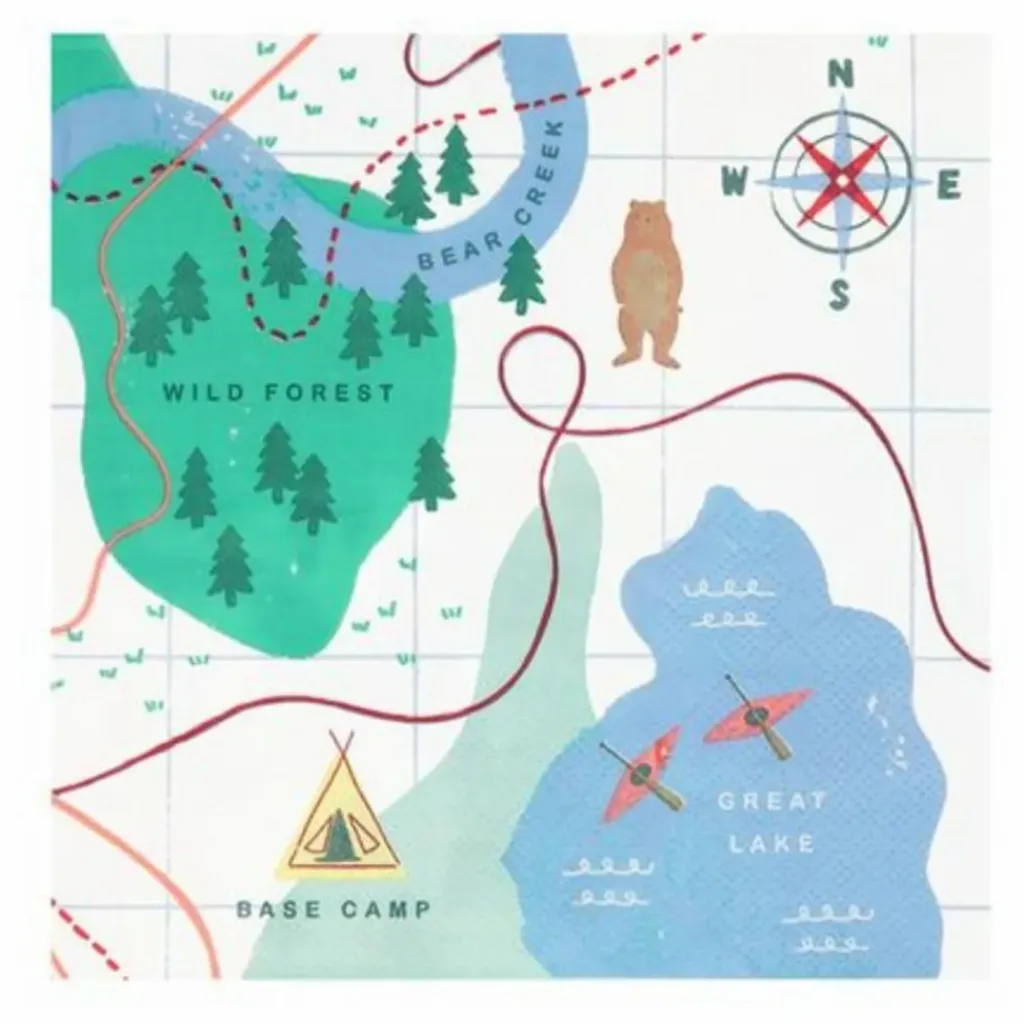 - Qui a dit que les serviettes devaient simplement être simples et pratiques ? Ces serviettes spéciales aventure camping se déplient pour révéler une merveilleuse carte ! Le complément parfait à toute fête conçue pour célébrer la magie du plein air. Utilisez-les pour décorer votre table de fête ou profitez-en autour d’un feu de camp ou d’un pique-nique. Ajoutez simplement des s’mores, des histoires et des jeux de société pour passer un moment amusant.