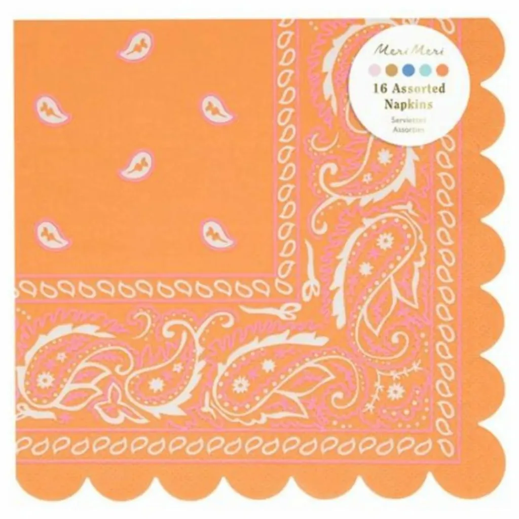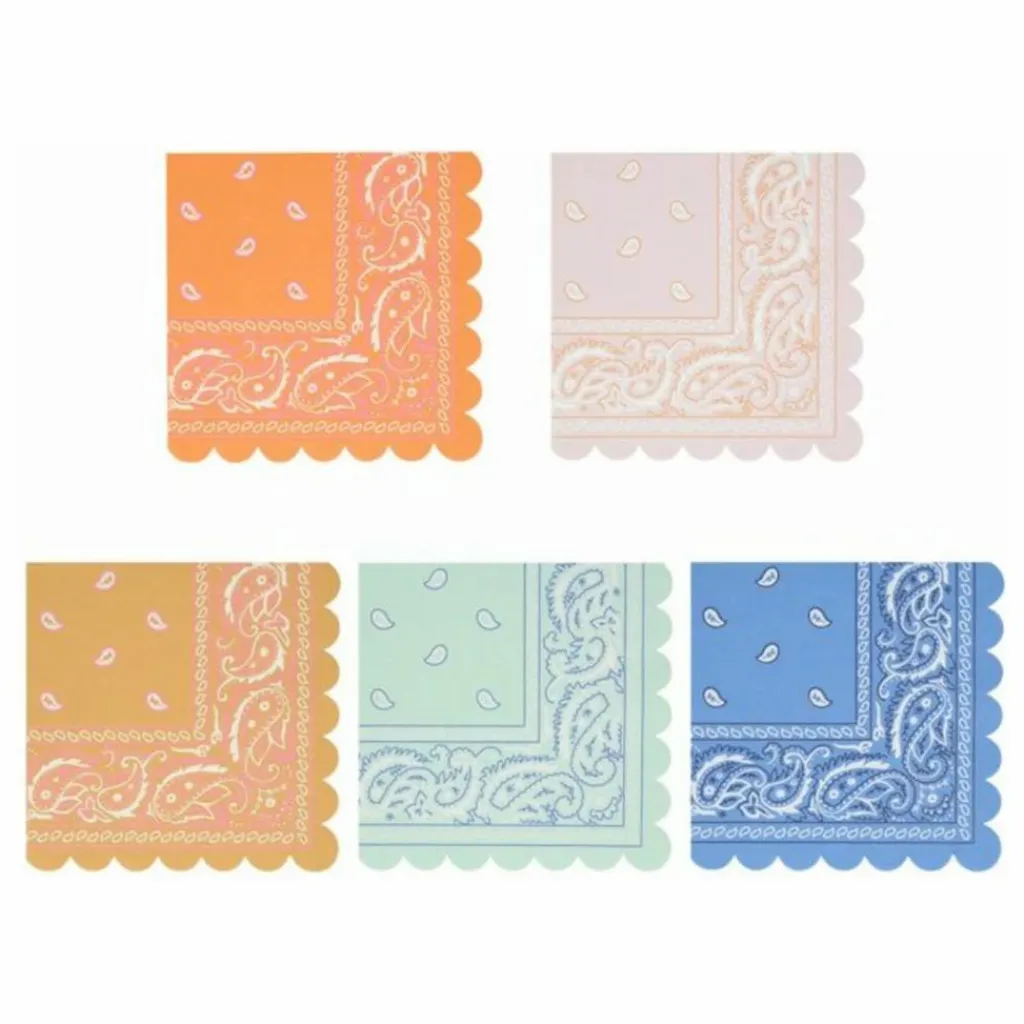 - Ouais, c’est l’heure d’une fête western ! Ce thème évoque une ambiance aventureuse, avec de nombreuses possibilités de charme rustique, de nourriture copieuse et de danse. Un thème amusant pour célébrer une fête d’anniversaire pour tous les âges, un événement de musique country ou un barbecue. Donnez vie à l’esprit de la frontière avec ces superbes serviettes en papier bandana. Ils sont parfaits pour l’aménagement de table et, avec leur élégant bord festonné, ajoutent une touche décorative.