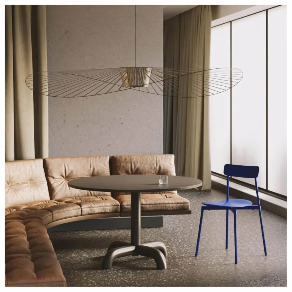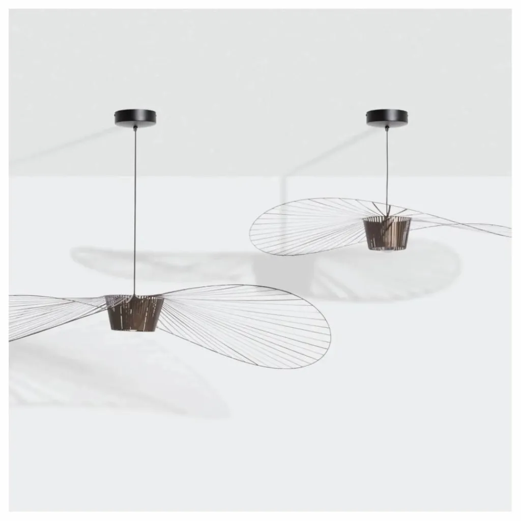 Vertigo est une « lampe cabane », selon les termes mêmes de son designer ; à la fois aérienne et graphique, elle s’adapte aux grands volumes comme aux petits, où elle recrée un espace propre et intime. Structure ultralégère en fibre de verre, mise en tension par des rubans polyuréthanes au toucher velouté, cette suspension exerce une vraie fascination quand elle s’anime et prend vie au grè des courants d’air.