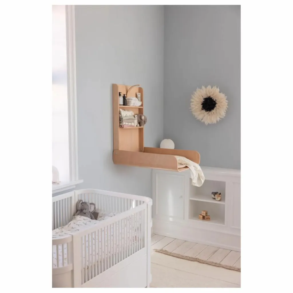 - La table à langer murale est une solution innovante et peu encombrante pour la salle de bains, la chambre à coucher ou d’autres petits espaces nécessitant une station à langer fonctionnelle. Avec son design léger et flottant, la table à langer s’intègre parfaitement dans les intérieurs modernes, qu’elle soit ouverte ou fermée. Lorsque vous avez votre bébé dans les bras et que vous devez changer une couche rapidement, le mécanisme de verrouillage de la table vous permet de la replier facilement d’une seule main. Le mécanisme de verrouillage est en bois moulé, tout comme le lit Sebra, et maintient la table bien en place lorsqu’elle est repliée. Les deux étagères intégrées, qui sont visibles lorsque la table est repliée, offrent de l’espace pour les articles à langer essentiels. Le matelas à langer Sebra s’adapte parfaitement à la table et reste en place lorsque vous le pliez. Les bords hauts et arrondis de la table à langer créent un espace de change sûr et sécurisé pour vous et votre bébé. Obtenez une position de travail confortable en installant la table à langer murale à la hauteur qui vous convient. Remarque : les vis et les chevilles doivent être achetées séparément. Veuillez consulter un professionnel pour vous assurer qu’elles correspondent au mur sur lequel vous souhaitez monter la table à langer. La table à langer est fabriquée en bois certifié de la même qualité robuste que le lit Sebra. Elle a été testée et approuvée conformément à la norme européenne EN 12221-1:2008+A1:2013, ce qui garantit une sécurité et une durabilité élevées. La table à langer murale Sebra est conçue au Danemark, en mettant l’accent sur la fonctionnalité, l’esthétique et la qualité. Elle porte le label écologique de l’UE et bénéficie d’une garantie de 5 ans. Remarque : les matelas à langer de dimensions maximales de 68x50x8,5 s’adaptent au plan à langer. Le matelas à langer doit être acheté séparément.