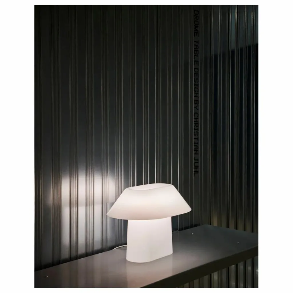 - Drome est une lampe de table polyvalente qui se caractérise par sa forme ovale distinctive. La forme elliptique étirée de la lampe modifie la perception de la lampe, selon l’angle sous lequel elle est vue. À l’intérieur de la forme creuse se cache une source lumineuse intégrée remplaçable, créant une silhouette unifiée et minimaliste qui permet à la lumière de briller à travers elle. Le variateur d’intensité en ligne permet de régler le flux lumineux, faisant de la lampe une source lumineuse polyvalente qui peut être utilisée pour créer une atmosphère dans une variété d’environnements et de paramètres, d’une table de chevet ou d’un bureau à un rebord de fenêtre ou une étagère.