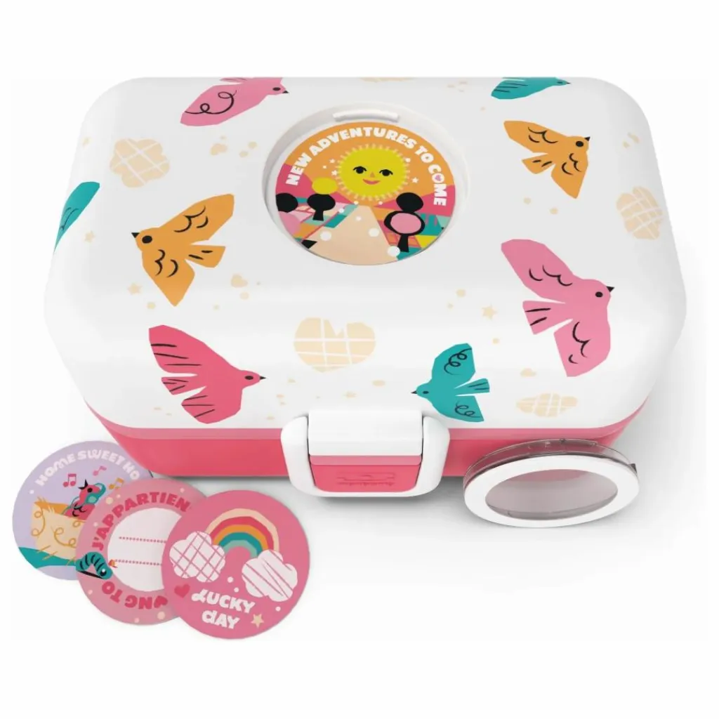 École, salle de jeux, plein air : la lunch box monbento® MB Tresor s’emporte partout… Tout en protégeant le contenu des folles aventures des gourmets en culottes courtes ! Idéal pour apprendre aux enfants les bienfaits d’une alimentation saine, monbento® l’a pensé comme un compagnon solide et amusant ; un coffre précieux au contenu délicieux. Cette lunch box pour enfants inclut un récipient de 500 ml compatible avec le micro-ondes (sans le couvercle), ainsi que deux petites caissettes de 150 ml chaucune pour le dessert, l’entrée ou un petit encas. Son couvercle supérieur peut même être personnalisé selon les préférences de son petit propriétaire grâce aux 4 vignettes incluses !