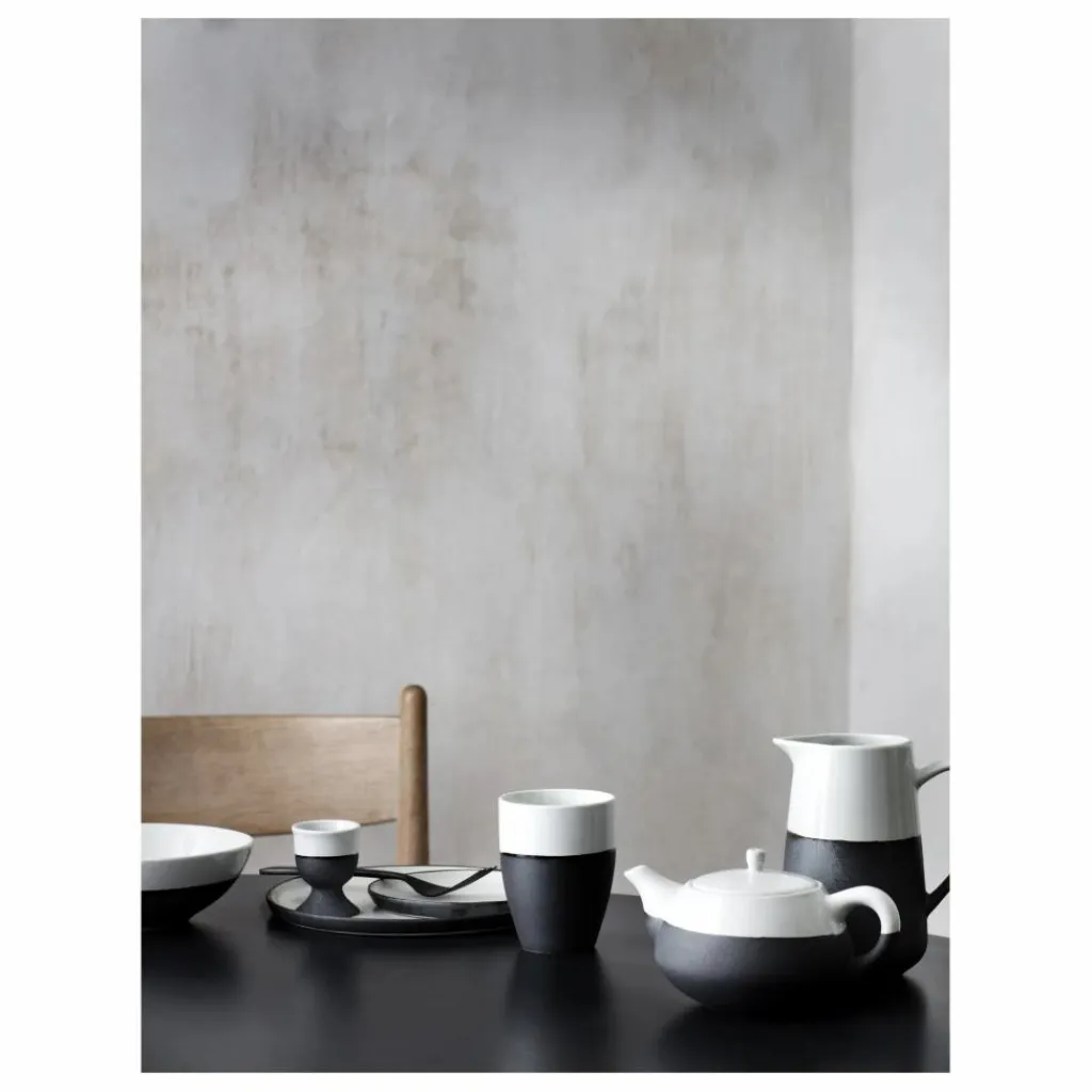 L’assiète Esrum en grès de la designer d’intérieur scandinave Broste Copenhagen associe des teintes monochromes contemporaines à des textures sensorielles contrastantes.