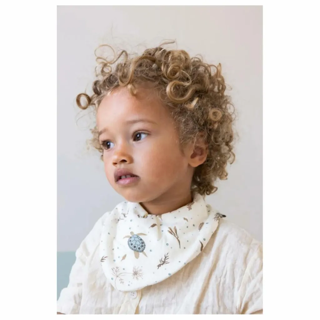 - Ce mignon bavoir en bandana ajoute un style supplémentaire à un élément essentiel de la vie de tous les jours. Le bavoir en coton biologique peut également être utilisé comme écharpe, ce qui lui confère une fonctionnalité polyvalente et une durée de vie plus longue. Taille réglable à l’aide de 2 boutons. Disponible en différents imprimés et couleurs unies. Bavoir Bandana, Jersey, paquet de 2 en vert, marron et bleu sur fond blanc crème.
