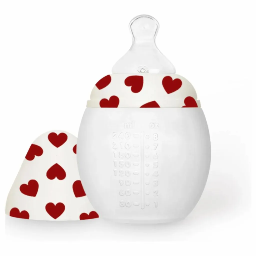 Les biberons Élhée, fabriqués en silicone médical pour limiter l’exposition aux perturbateurs endocriniens, offrent une alimentation sûre et confortable à votre bébé. Le format 150 ml, avec sa tétine à débit lent (S), est idéal dès la naissance pour une tétée douce et apaisante, recréant les sensations de l’allaitement maternel. Le 240 ml, équipé d’une tétine physiologique à débit moyen (M), convient aussi dès la naissance et s’adapte en complément de l’allaitement avec une tétine à débit lent. Enfin, le 330 ml – 2ᵉ âge, conçu pour les bébés les plus gourmands dès 3 mois, accompagne leurs besoins croissants avec une tétine à débit moyen, en parfaite continuité avec le 240 ml.