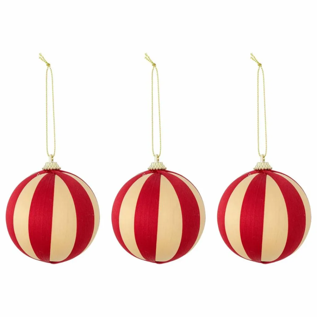 - Le Bibelot Wynn de Bloomingville est un ensemble de trois boules de Noël élégantes, magnifiquement décorées de rayures classiques rouges et blanches. Ces boules rondes apportent une touche intemporelle à la décoration de Noël et sont dotées d’un élégant cordon doré, idéal pour les suspendre au sapin ou pour agrémenter une décoration festive.
