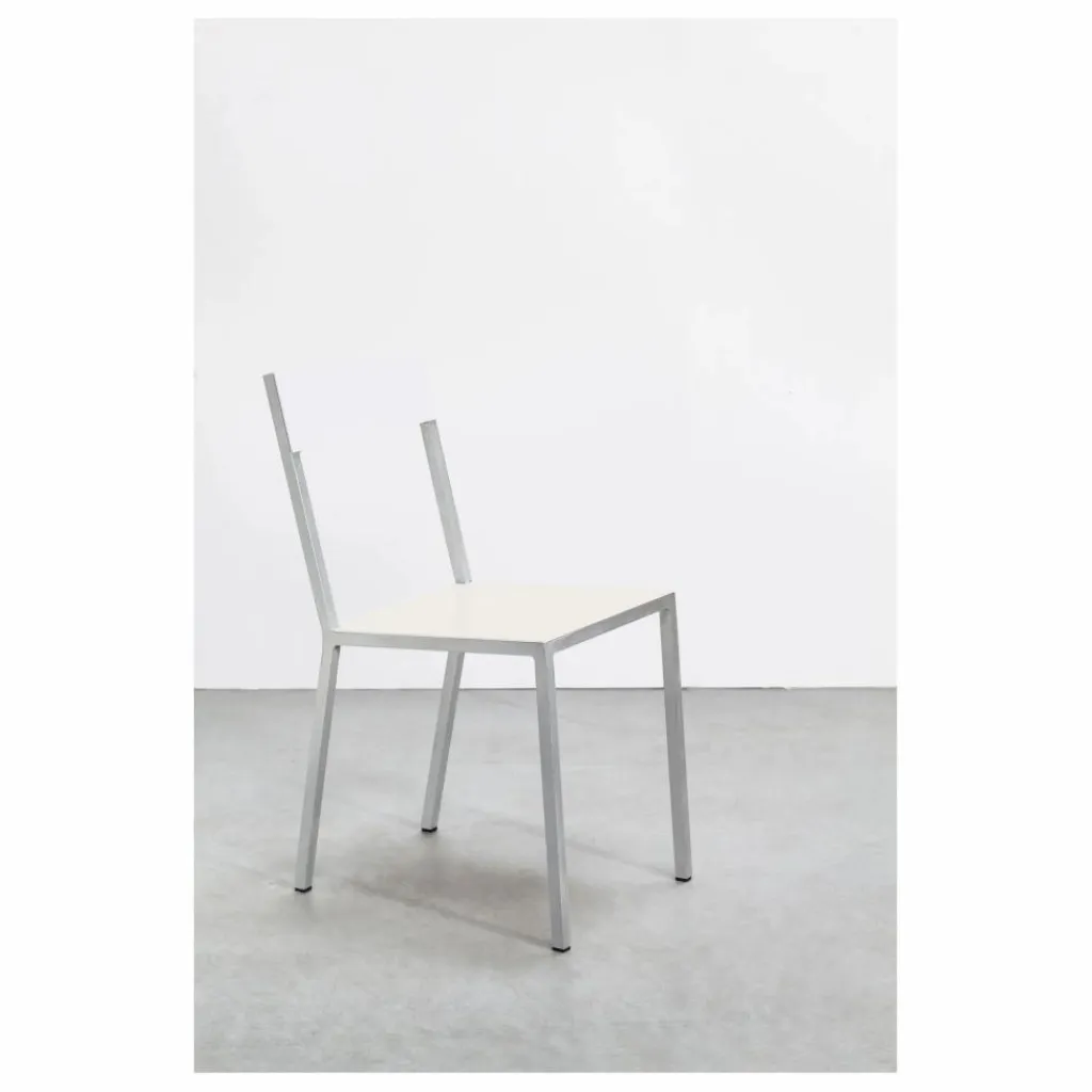 - Le couple de designers renommé Muller Van Severen a conçu sa chaise en alu en 2015 en tant que chaise d’extérieur pour le pavillon Bahreïn d’Anne Holtrop lors de l’exposition universelle de Milan. Depuis, elle est devenue l’un des modèles préférés des architectes et des amateurs de design qui ont un penchant pour le minimalisme ludique. Bien qu’elle ait été conçue à l’origine comme une chaise d’extérieur, nombreux sont ceux qui lui ont déjà trouvé une place à l’intérieur de leur maison. Le succès de cette chaise est dû à sa légèreté et à sa signature typique de Muller Van Severen. Les couleurs soigneusement sélectionnées sont appliquées à l’aide d’une laque protectrice contre les UV, afin de conserver leur éclat. Le cadre en aluminium non revêtu brille merveilleusement au soleil.