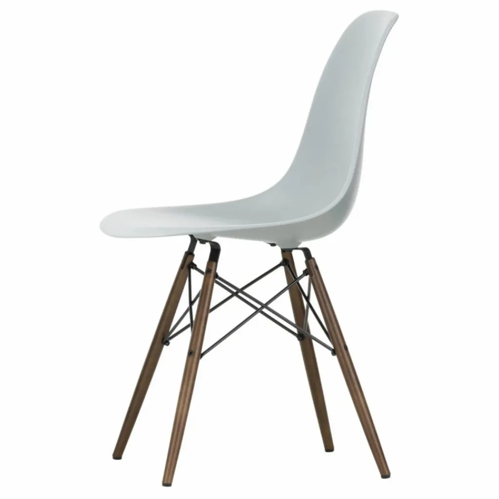 La chaise DAW (Dining Height Armchair Wood Base) a été conçue par Charles et Ray Eames, qui ont marié une coque d’assise aux formes organiques – désormais fabriquée par Vitra à partir de plastique recyclé post-consommation – à un piètement à quatre pieds en bois. Cette combinaison contrastée de plastique et de bois confère à cette création classique un aspect chaleureux et décontracté.