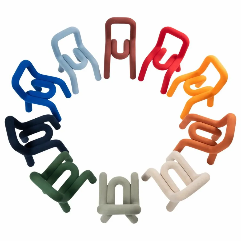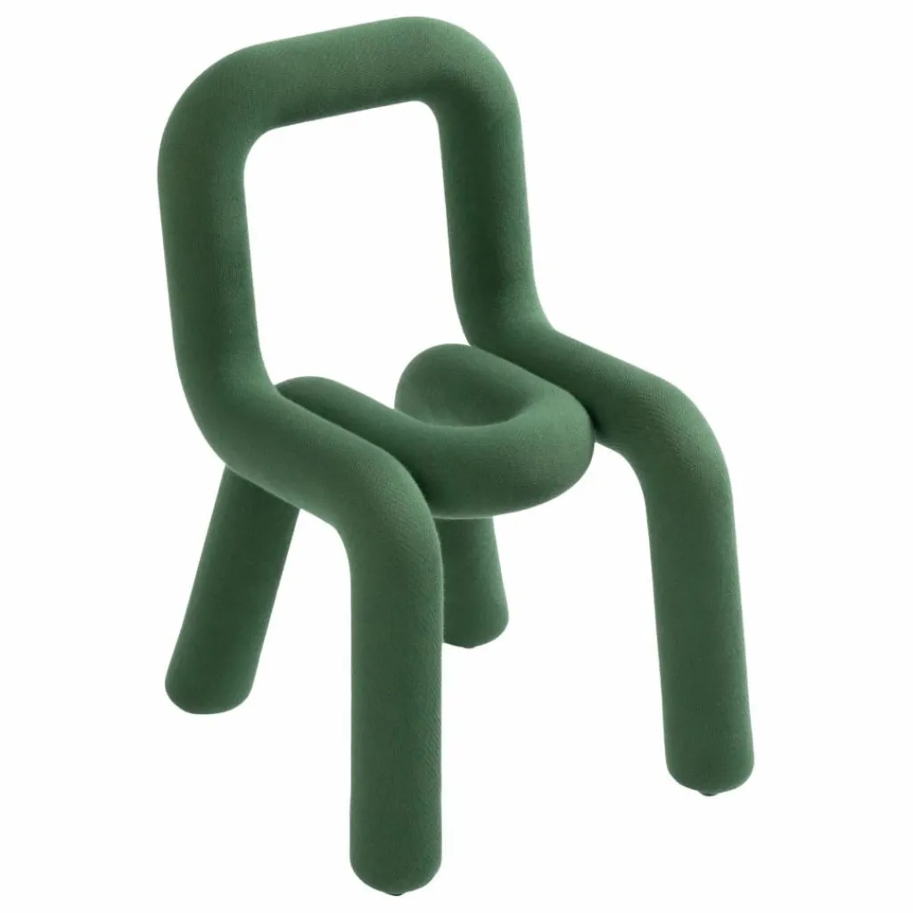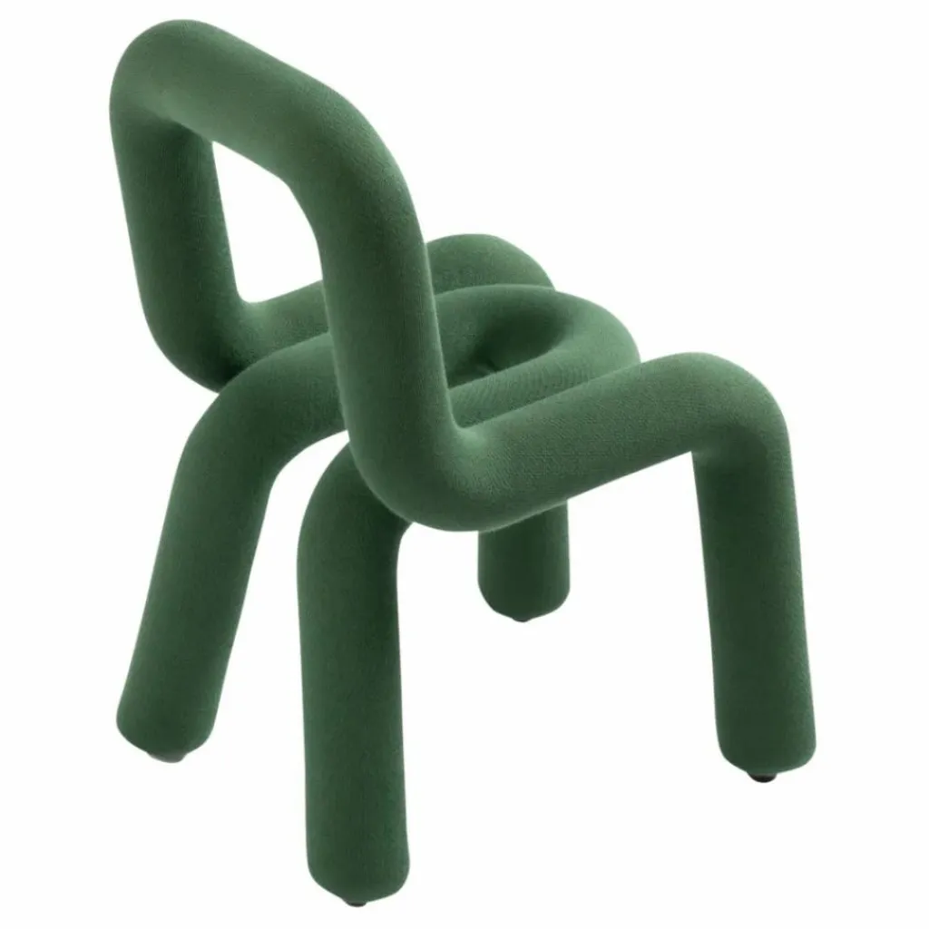 Création du collectif Big Game, la chaise bold est inspirée de la tradition de la chaise avec tube d’acier habituellement simplement utilisé pour le piètement. Ici tout en tube d’acier, la chaise est épaissie par un effet de rembourrage en mousse qui lui apporte un confort extrême. Ludique et graphique, elle se compose de deux parties tubulaires simplement imbriquées l’une dans l’autre, apportant un style à la fois épuré et fantasque.