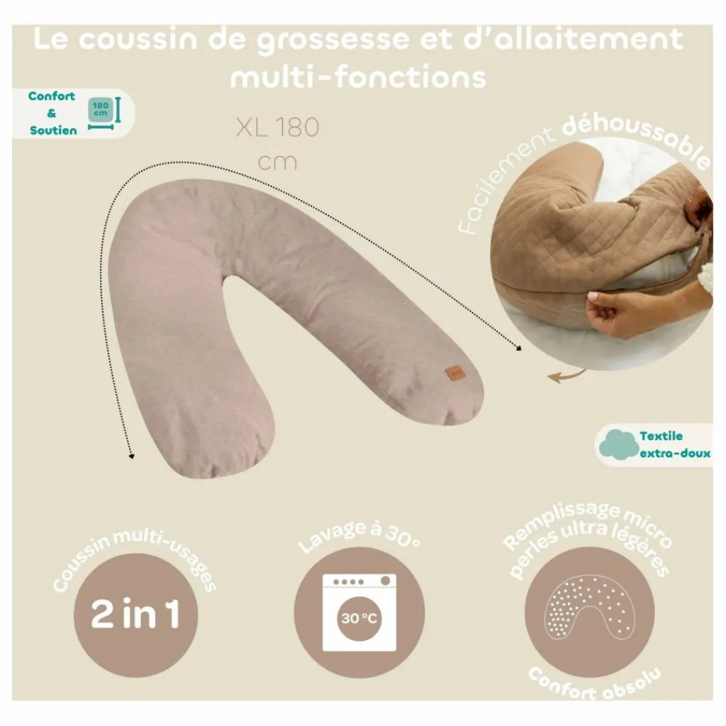- COUSSIN MULTI FONCTIONS : Un coussin de maternité ergonomique, utilisable dès la grossesse puis comme coussin d’allaitement