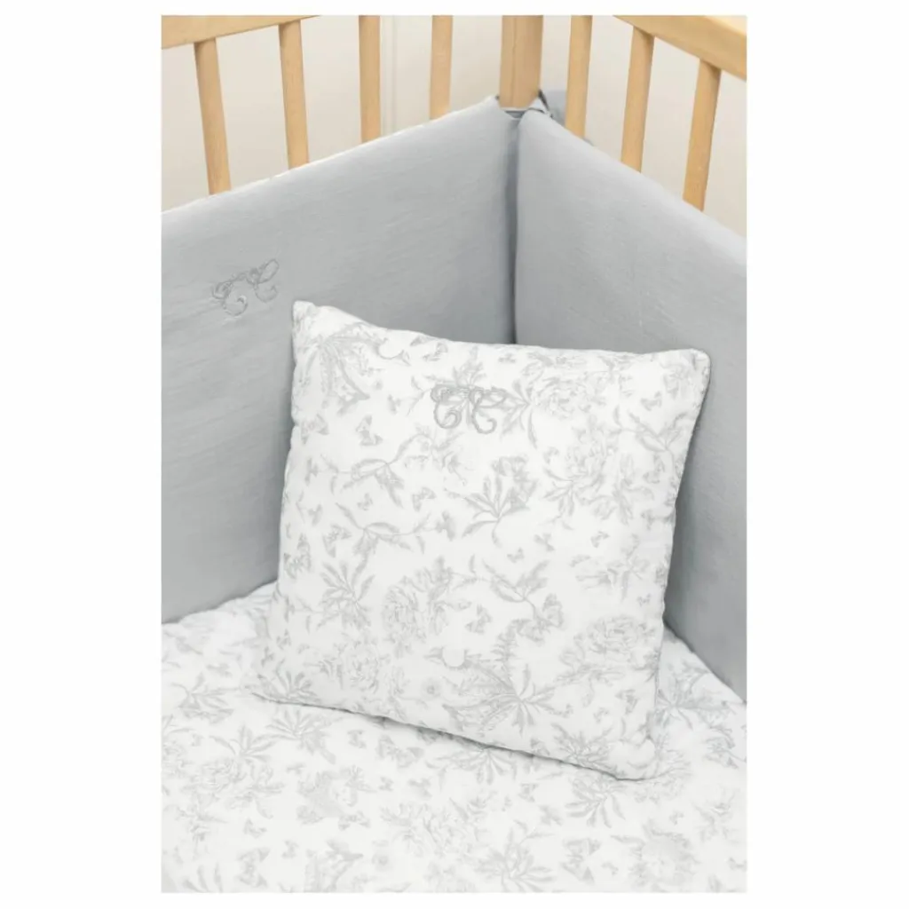 - Housse de coussin réversible imprimé inspiration Toile de Jouy dessiné par Tartine et Chocolat en coton lange, avec coussin inclus. D’un côté gris clair et de l’autre imprimé Toile de Jouy, il viendra décorer la chambre de bébé. Déhoussable pour facilité l’entretien. Dimensions: 35 x 35cm.