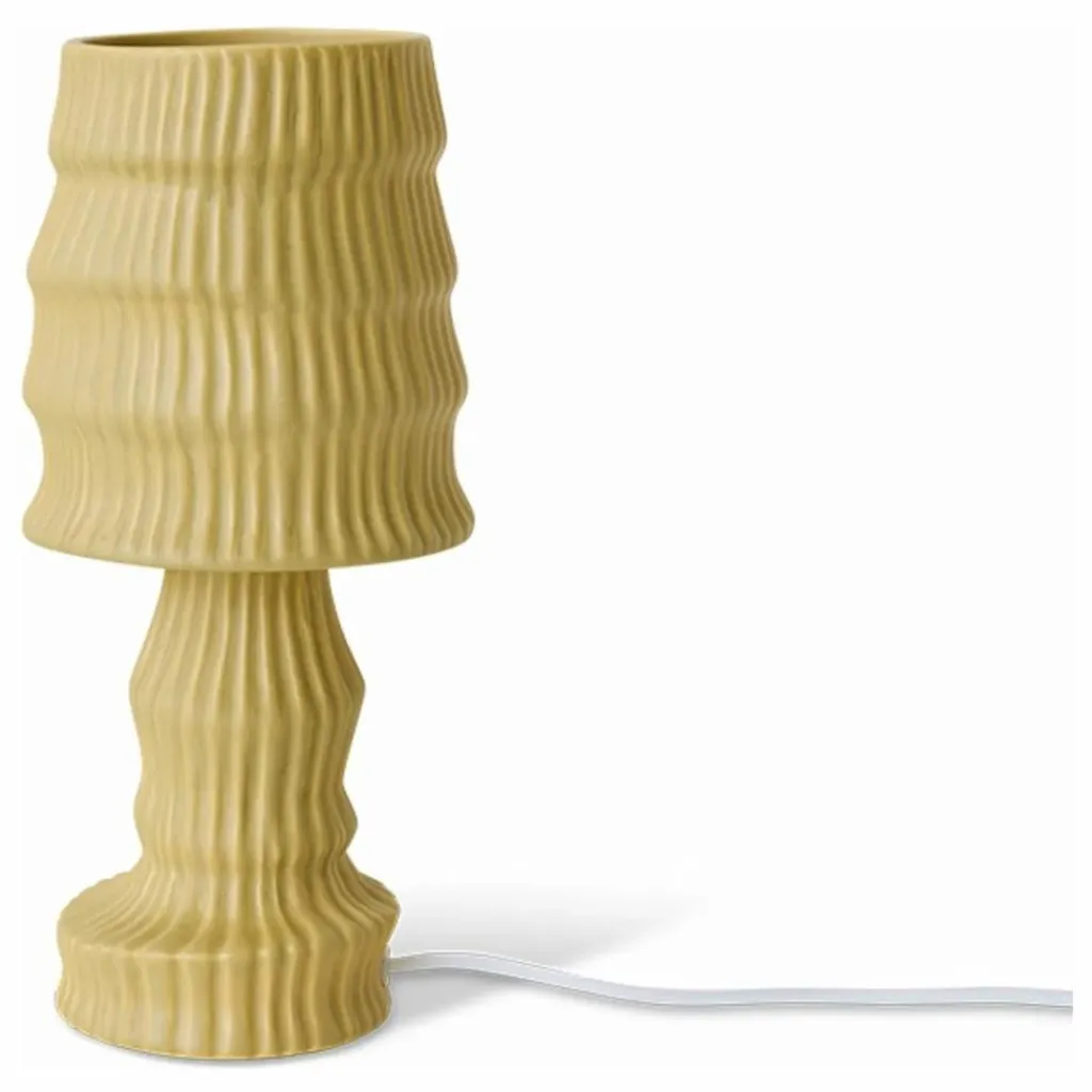 - Avec ses douces rainures verticales et sa silhouette sculpturale, cette lampe de table en céramique joue avec le rythme et la répétition. L’audacieuse glaçure moutarde ajoute une dose de chaleur et de caractère, tandis que la forme ton sur ton crée un aspect homogène, presque monolithique. Une pièce au design avant-gardiste qui s’impose sur les étagères, les buffets ou partout où l’on a besoin d’une lueur créative.