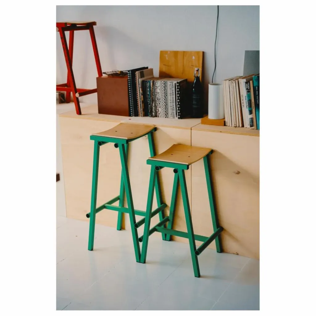 - Conçu par le designer espagnol Marc Morro, le tabouret de bar Taburete 8 utilise un langage de conception direct pour créer un tabouret de bar fonctionnel et robuste avec une expression distincte mais minimaliste. Le siège en contreplaqué courbé et le cadre en tube d’acier sont tous deux clairement présentés, les différents composants étant mis en valeur par leur simplicité brute et leur utilisation audacieuse de la couleur. Disponible en deux hauteurs, avec le siège en placage de chêne et le cadre en acier dans différentes finitions et couleurs, Taburete 8 allie le confort du siège à l’esthétique industrielle pour créer un tabouret polyvalent qui s’intègre facilement dans les bars et les restaurants, ainsi que dans les maisons privées.