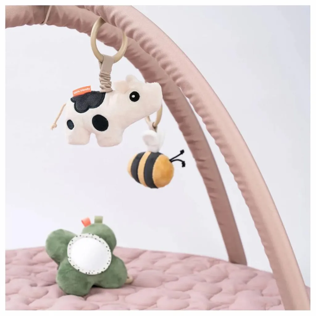 - Tapis de jeu: 100% polyester. Jouets: Tissu: 80% coton 20% polyester. Rembourrage: 100% fibres de polyester.