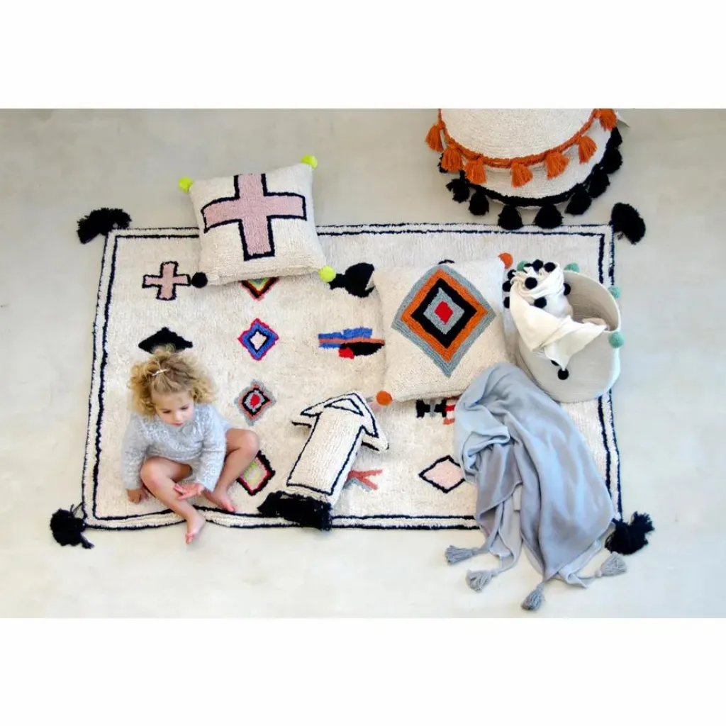 - Affichez vos goûts dans votre décoration intérieure avec ce tapis tendance de style bohème, qui combine des couleurs noires, beiges, vives, pastel et néon. Décoré de motifs ethniques, il parvient tout de même à se fondre dans une pièce neutre et à unifier toute la décoration. C’est le tapis idéal pour toutes les pièces de la maison !