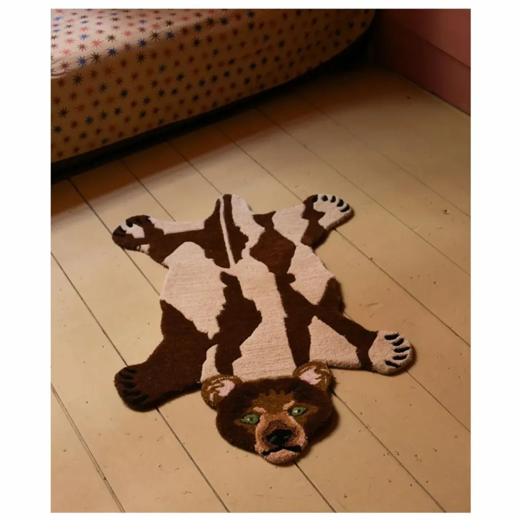 Découvrez le Tapis Ours Quin Petit, une belle addition à votre décoration intérieure. Ce charmant tapis, 100 % tufté à la main par notre équipe talentueuse en Inde, est fabriqué en laine avec un support en coton. Sa forme unique d’ours et ses couleurs terreuses de brun et beige apportent un élément ludique et confortable à n’importe quelle pièce.