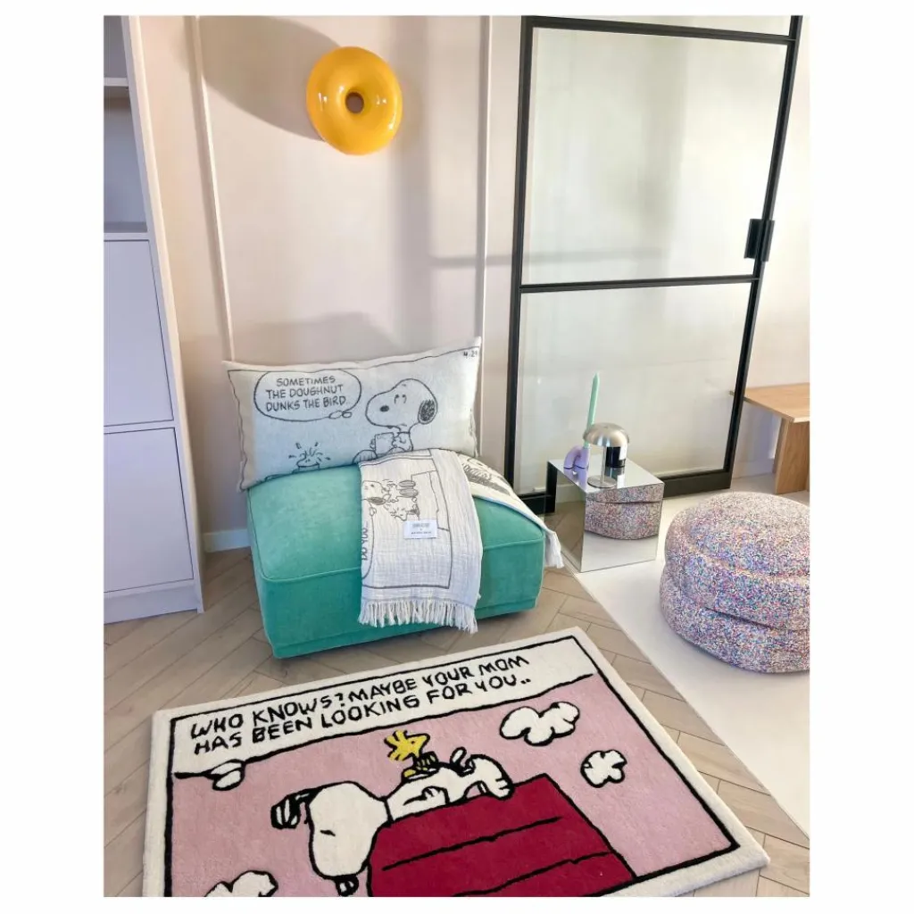 - Le tapis Peanuts Comic Mom est touffeté à la main en Inde et certifié par le label GoodWeave. C’est la meilleure garantie qu’il n’y a pas de travail des enfants, de travail forcé ou de travail en servitude. De plus, avec chaque achat, vous soutenez des programmes qui éduquent les enfants et améliorent les conditions de travail des adultes dans les communautés de producteurs.