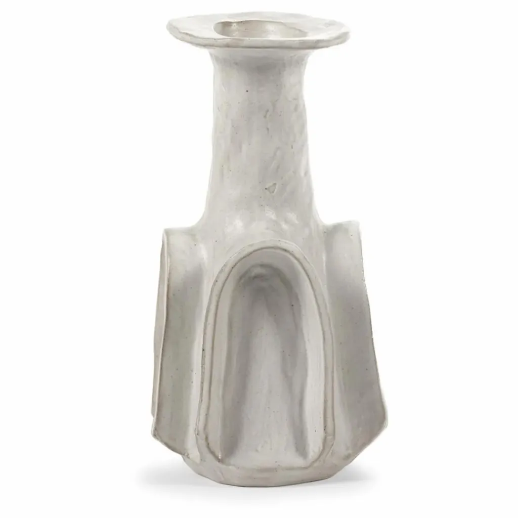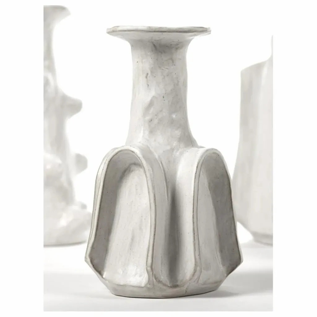 Les formes de ce vase sont dans l’esprit de Marie Michielssen depuis un certain temps. Elle les a d’abord réalisées en miniature avant de passer à la taille supérieure. Elle les a modelées à la main en suivant son intuition, mais avec une logique mathématique sous-jacente.