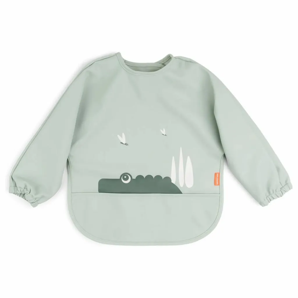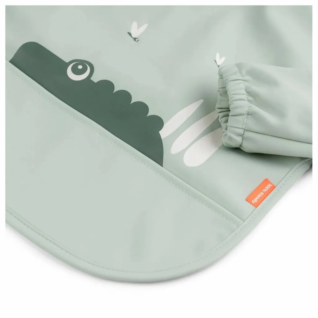 Ce bavoir doux, imperméable et dôté d’élastiques autour des poignets empêchera Bébé de se mouiller. Plus hygiénique, il est facile à essuyer. Un vrai gain de temps ! L’adorable bavoir vert est décoré du Deer friend Croco et d’insectes.