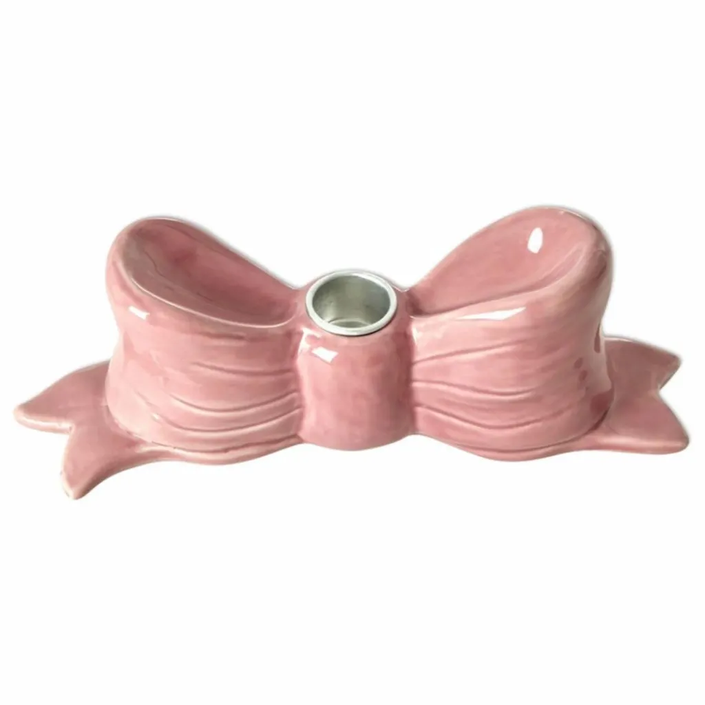 - Cet adorable bougeoir en forme de nœud dans une teinte rose tendre ajoute une touche de charme à n’importe quel espace. De grande taille, il est parfait pour être utilisé seul ou avec d’autres photophores !