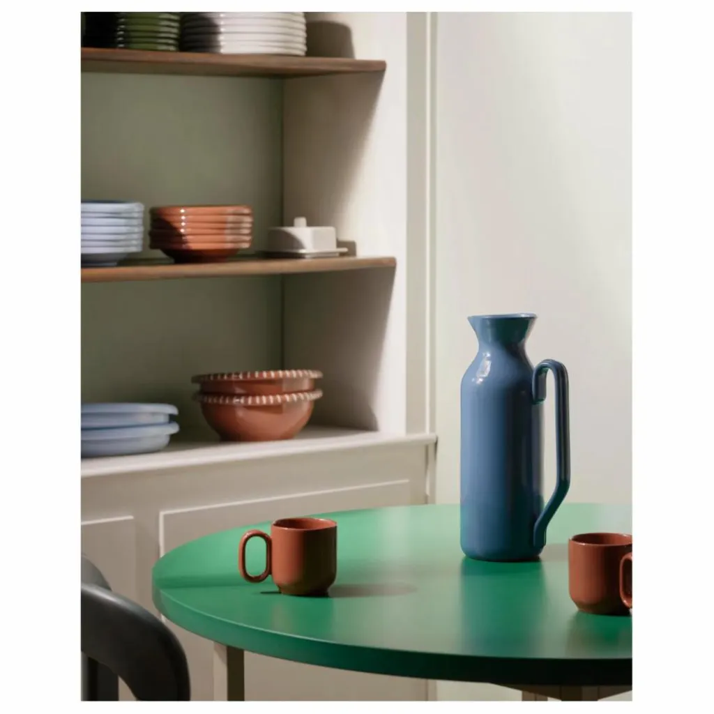 Conçue par Rui Pereira, la Carafe Barro fait partie d’une collection de vaisselle en terre cuite. Sa généreuse capacité de deux litres et sa poignée confortable en font un choix plaisant. Fabriquée au Portugal, elle peut être utilisée seule ou avec d’autres pièces de la collection pour créer des arrangements de table uniques.