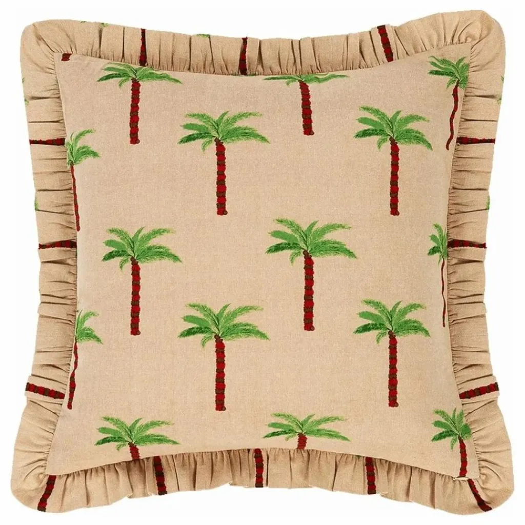 - Le coussin à volants Les Palmiers est un article de fabrication exceptionnelle qui égaye votre intérieur. L’association de l’imprimé palmier et du volant donne du cachet à votre intérieur. Combinez-les avec d’autres coussins pour créer une atmosphère joyeuse dans toutes les pièces où vous les placerez. Spécifications : – Dimensions : 50 x 50 cm – Matière : 100 % coton biologique, 100 % polyester – Laver avec des couleurs similaires à 30°C – Ne pas blanchir – Ne pas sécher dans le sèche-linge