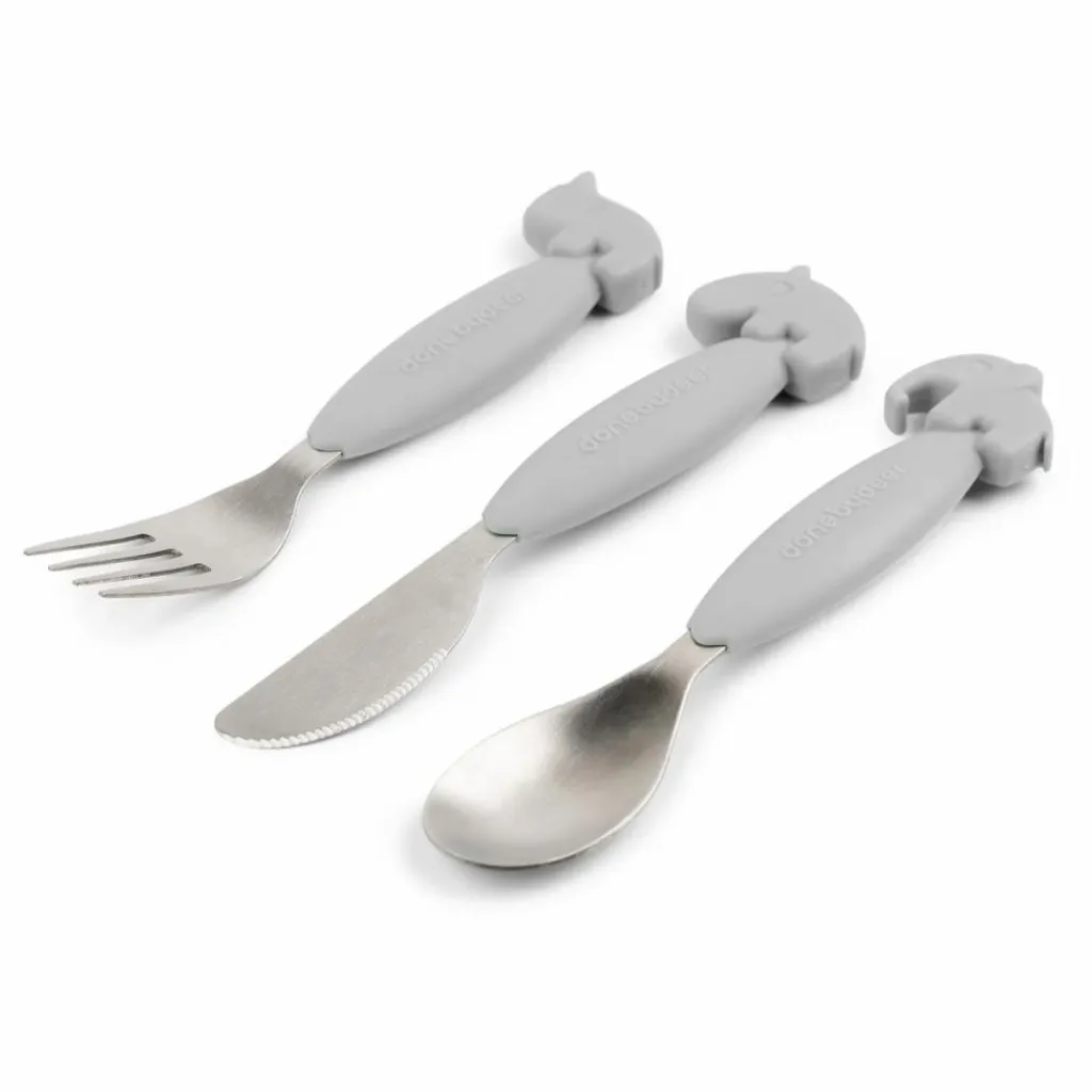 - Ce set comprend : 1 fourchette, 1 couteau, 1 cuillère.