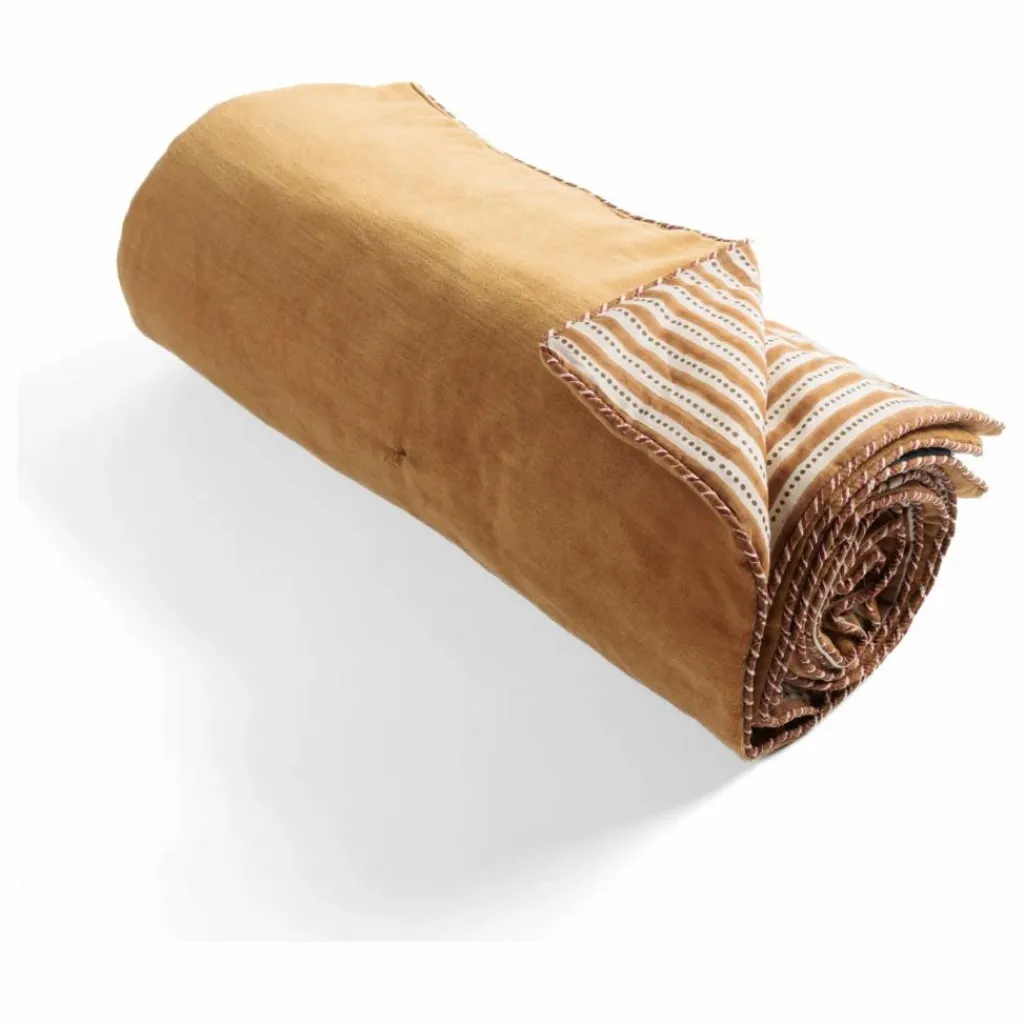 - Un édredon raffiné pour sublimer canapé ou lit. L’édredon Akiko est confectionné en velours de coton uni sur une face et en voile de coton imprimé sur l’autre, avec une finition passepoil élégante. Son matelassage lui confère un moelleux unique et un confort incomparable. Grâce à sa polyvalence, il peut être disposé aussi bien en jeté de canapé qu’au pied du lit. Chaque édredon est imprimé selon la technique traditionnelle du block print.