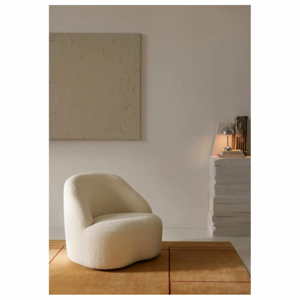 - Le superbe fauteuil Margas LC1 a été imaginé par la designer Louise Liljencrantz. Il présente un look élégant et chaleureux. Le cadre est fabriqué en hêtre massif et en contreplaqué, puis garni de mousse HR et de ouate de polyester. Les pieds en bois sont tournés et fraisés avec soin. Le tissu bouclé rassemble laine et viscose dans une texture irrégulière de nœuds et de boucles, offrant un toucher doux et dense.