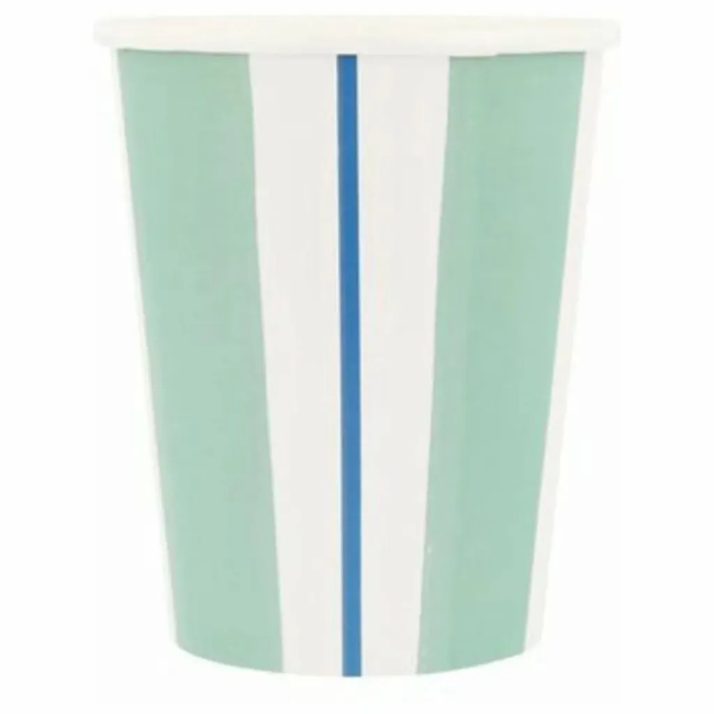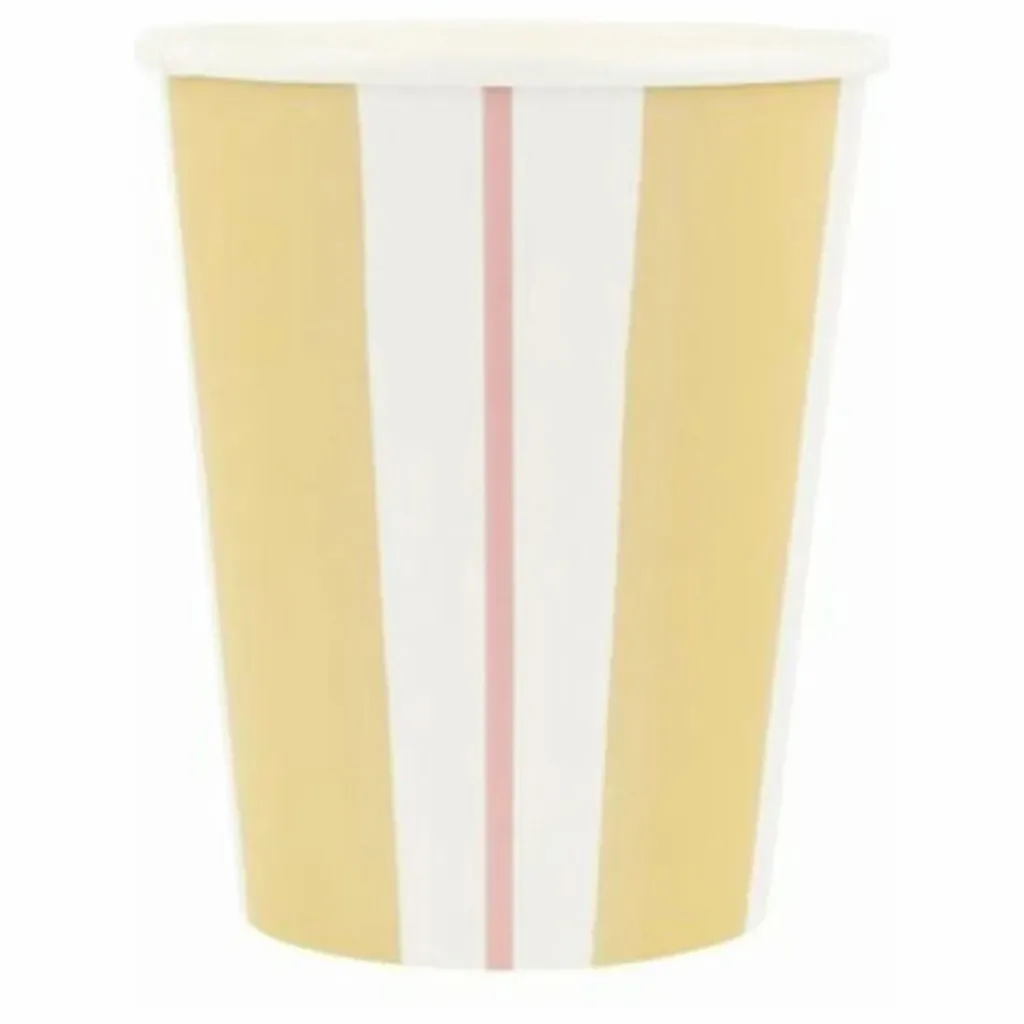 - Ces rayures classiques, aux couleurs primaires amusantes, donneront instantanément une ambiance estivale à vos célébrations. Inspirés des auvents, des transats et des chaises longues, ces gobelets en papier haut de gamme sont parfaits pour les garden-partys, les pique-niques et les fêtes sur la plage et la piscine.