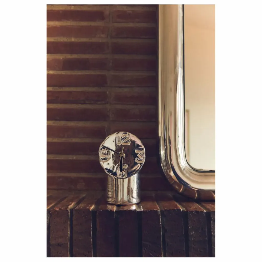 - Conçue pour allier fonction et charme, cette horloge en céramique est unique en son genre grâce au savoir-faire artisanal et aux imperfections créées par le processus de cuisson. L’émail chromé et la plaque d’immatriculation peinte à la main donnent à l’horloge un clin d’œil au passé, en lui conférant un éclat métallique subtil qui capte magnifiquement la lumière. La finition chromée ajoute non seulement de la profondeur et du caractère, mais confère également à l’horloge un aspect élégant et poli qui lui permet de se distinguer dans n’importe quelle pièce. Sa petite taille et sa couleur rafraîchissante en font un objet intemporel dans votre maison de tous les jours, alliant sans effort le caractère d’antan au design contemporain.