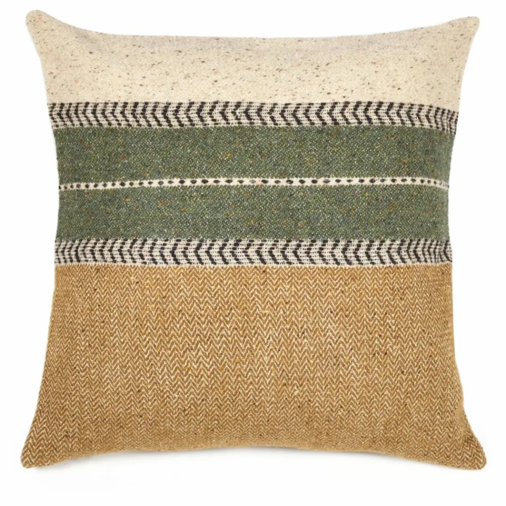 Cette housse de coussin mêle lin et laine pour un tissu volumineux et doux.