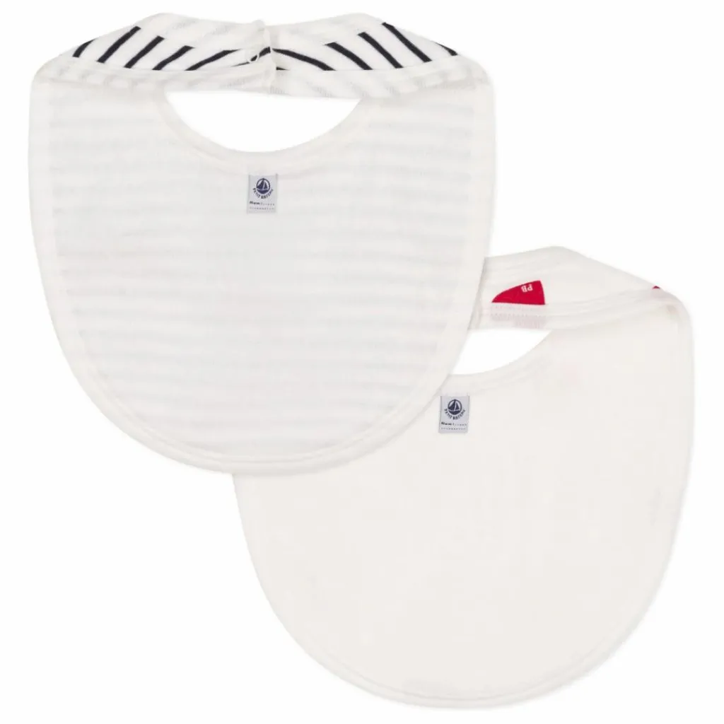 - Lot de 2 bavoirs en côte, la matière emblématique Petit Bateau.
