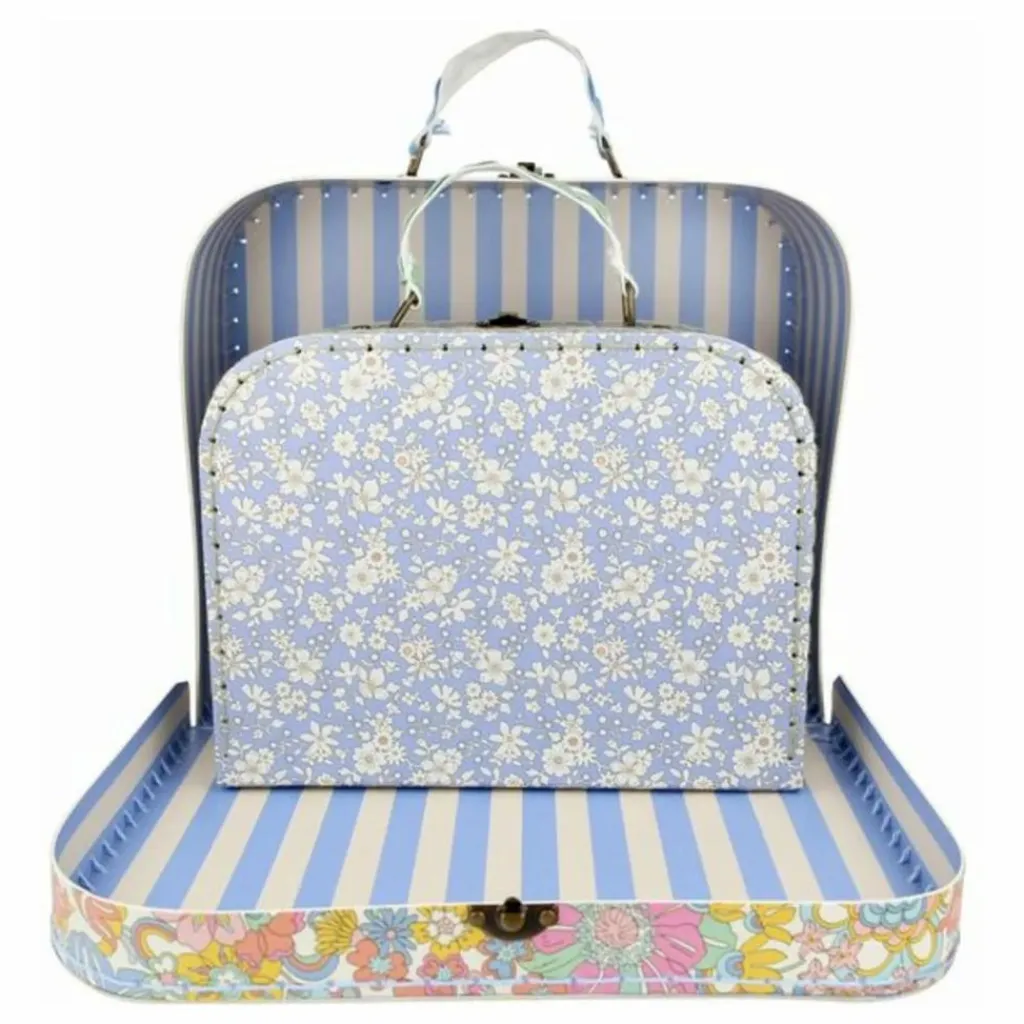 - Cet ensemble de valises sophistiqué, créé en collaboration avec Liberty, n’est pas seulement un accessoire à la mode, il peut également servir de solution de rangement décorative pour votre maison. Dotés de motifs floraux Liberty et de poignées en tissu ornées de détails ricrac, ils sont un incontournable pour les enfants de 3 ans et plus et les adultes. Fabriqués à partir de carton durable, ils allient fonctionnalité et élégance, ce qui en fait un merveilleux cadeau.