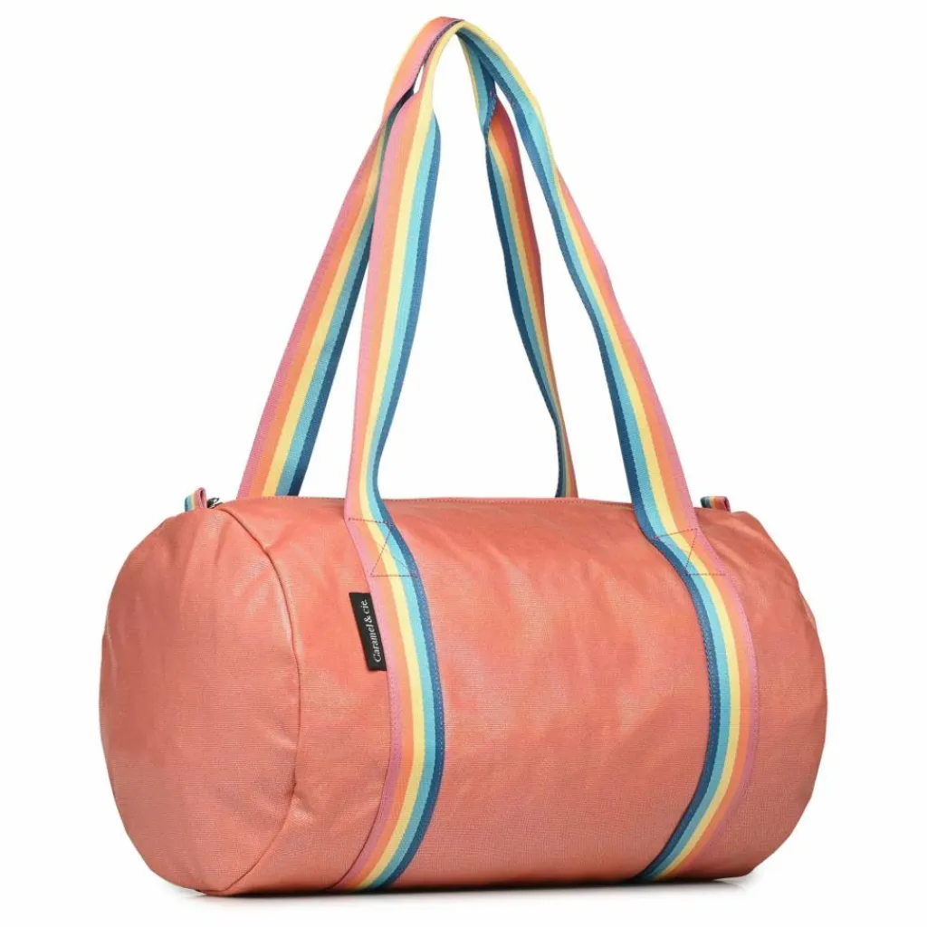 Pensé pour les petites filles (mais aussi les mamans!) ce sac polochon ultra tendance peut être porté à l’épaule ou à la main avec ses anses aux couleurs arc-en-ciel.