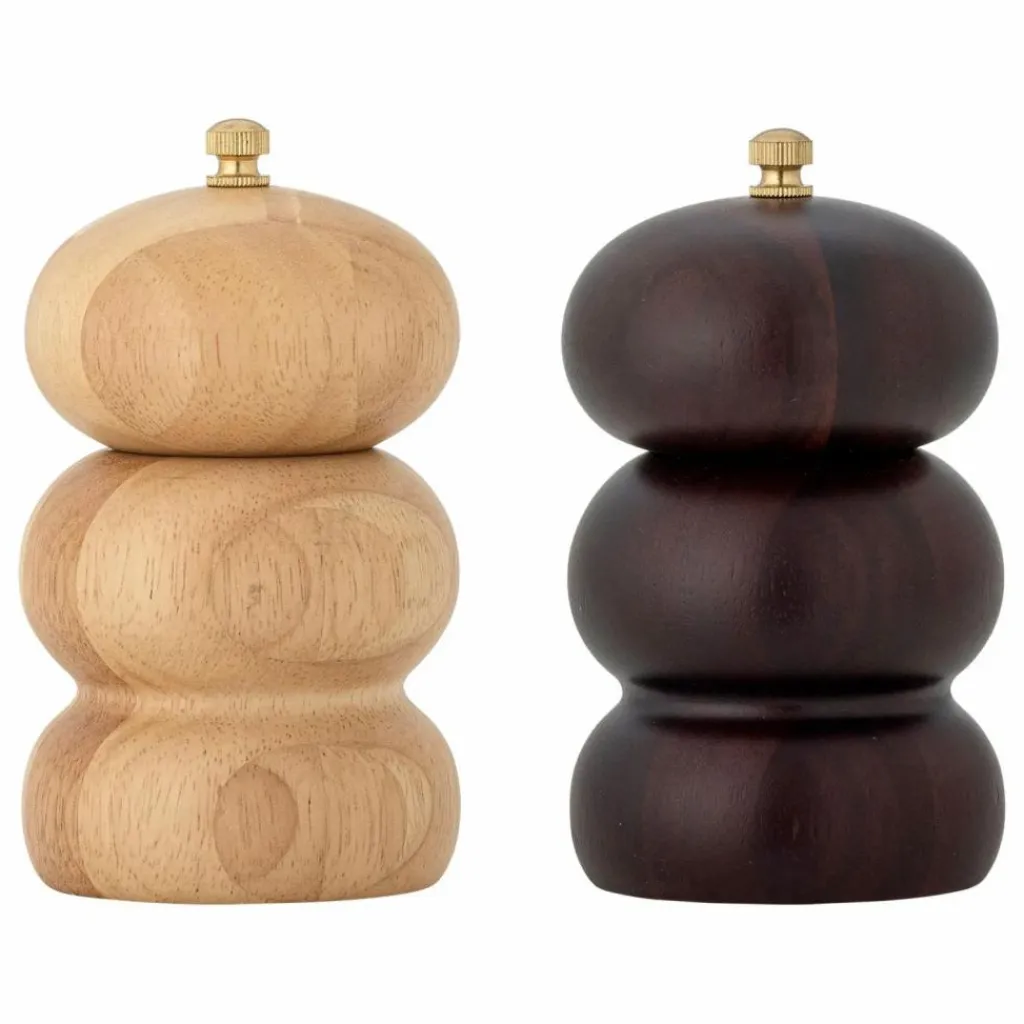 - Les Moulins à sel et à poivre Marge de Bloomingville se présentent sous la forme d’un set de deux et sont fabriqués en bois d’hévéa avec une finition en laque transparente. L’ensemble se compose d’un moulin clair et d’un moulin foncé aux formes douces et incurvées qui créent un aspect naturel et accueillant sur la table à manger.