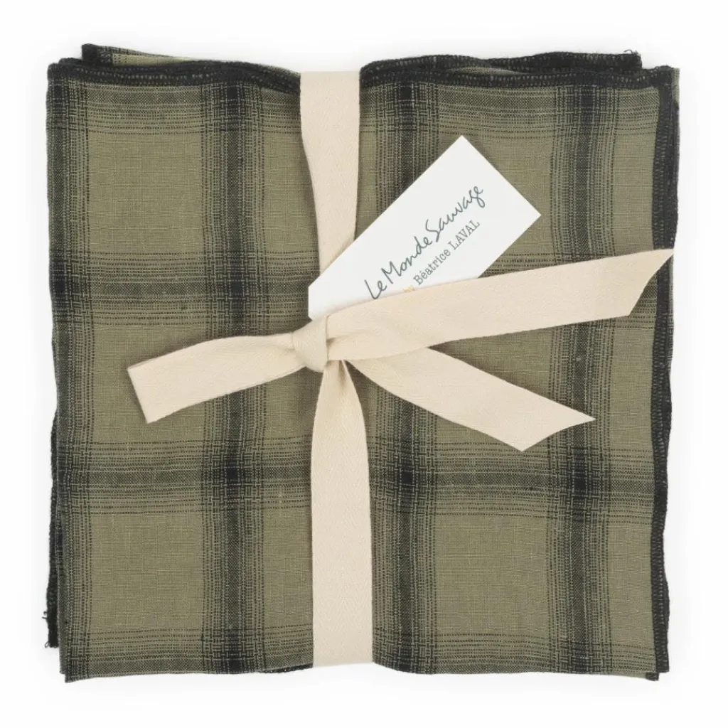 - Lot de 4 serviettes de table motif tartan. Finition coutures apparentes.