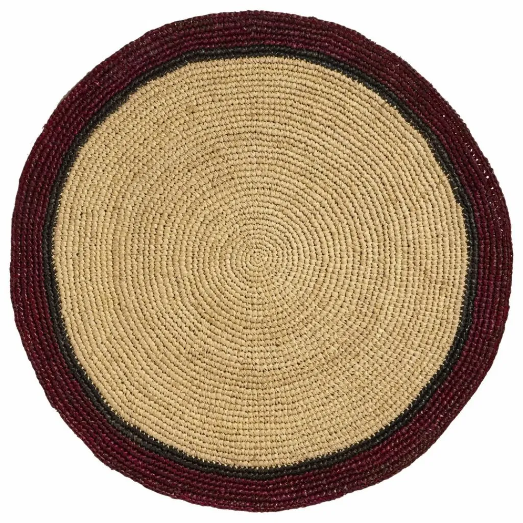 La fibre naturelle de raphia est teintée lorsqu’elle est colorée. La teinture peut légèrement décolorer à la lumière, rangez-les à l’abri après usage. - Fabrication : Madagascar