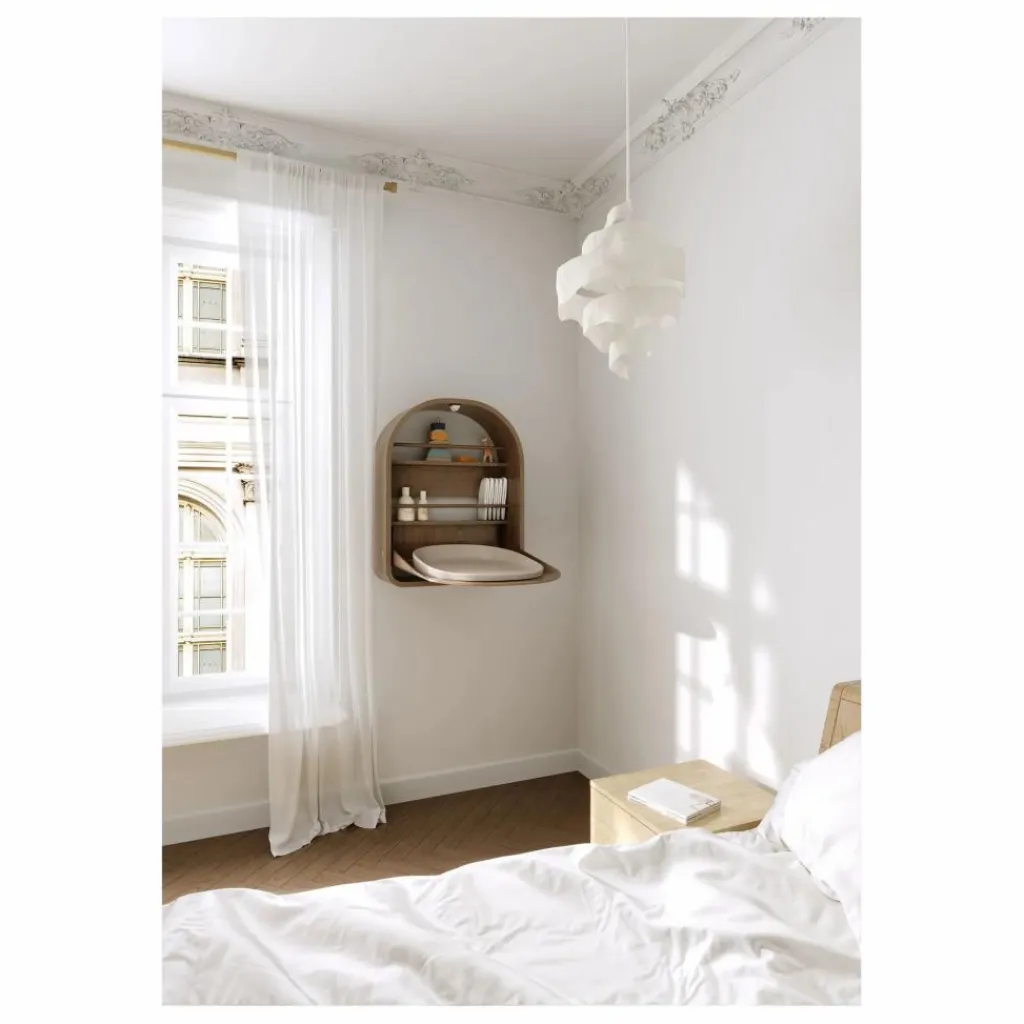 - La table à langer murale Kai allie esthétique et fonctionnalité avec ses formes douces et arrondies. Parfaite pour les petits intérieurs et les espaces réduits, elle offre à la fois gain de place et élégance.Grâce au système Easy Touch, la table à langer s’ouvre et se ferme en toute simplicité, pour un usage pratique et intuitif.Deux étagères spacieuses, placées juste au-dessus de vous et de votre bébé, permettent d’avoir tout à portée de main – crèmes, couches, lingettes et autres indispensables.Le matelas à langer ovale Kai s’adapte parfaitement à la table, offrant une solution harmonieuse et fonctionnelle pour le change.
